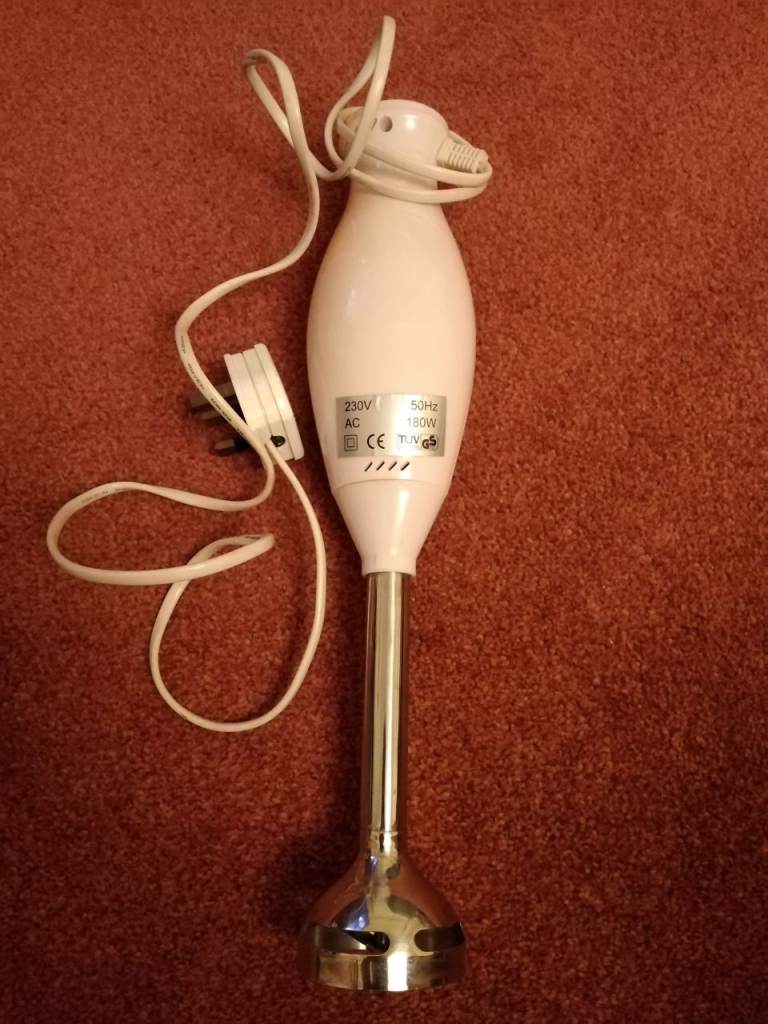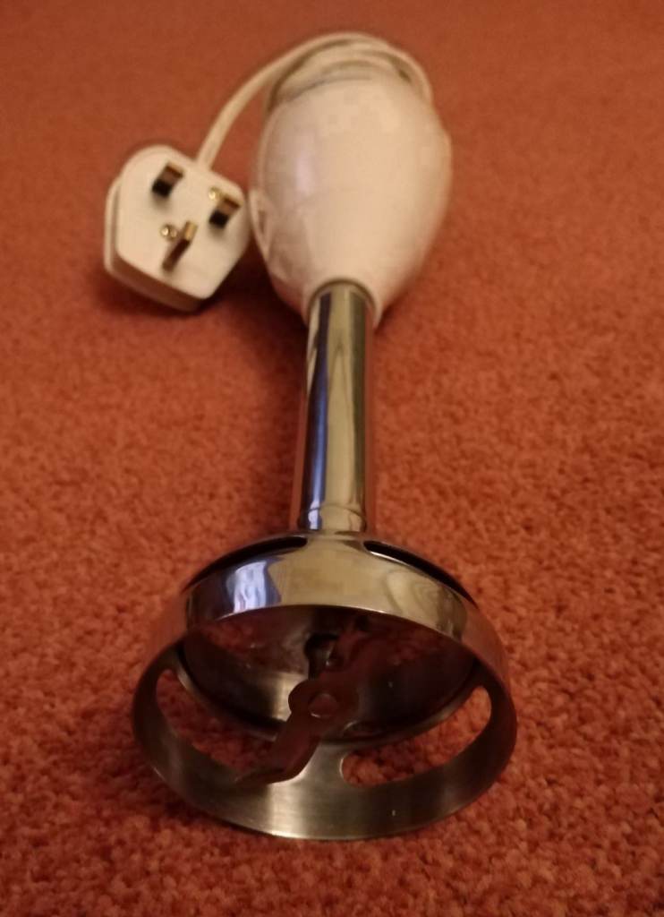Electric hand blender in very good working condition. Slight yellowing around the top where the start button is, but doesn't affect the use. Collection only from Gravesend, Kent. £5.