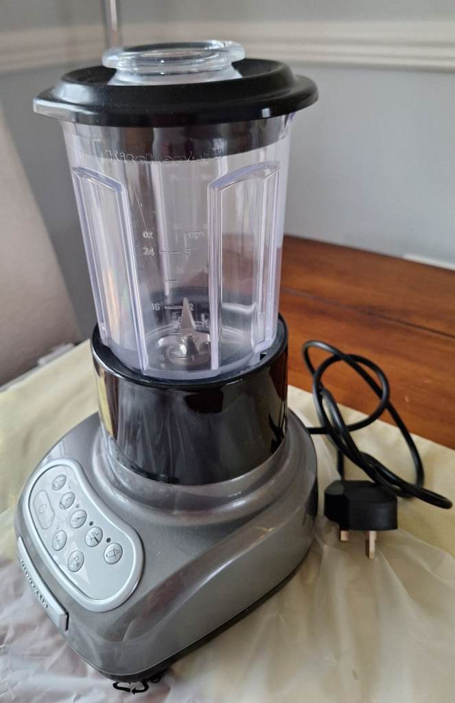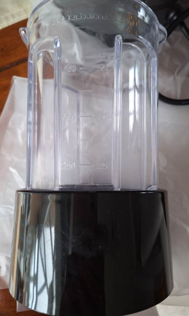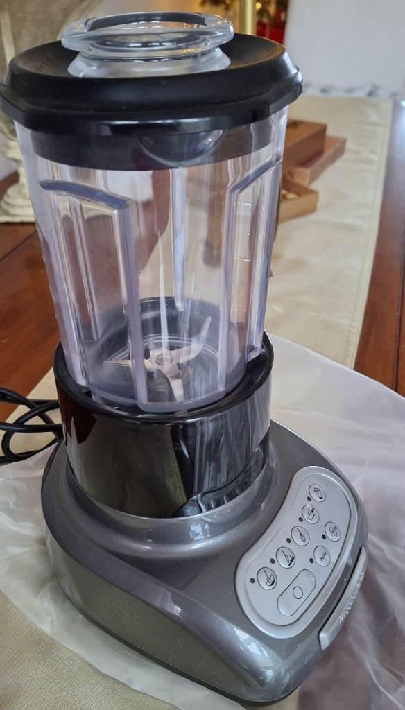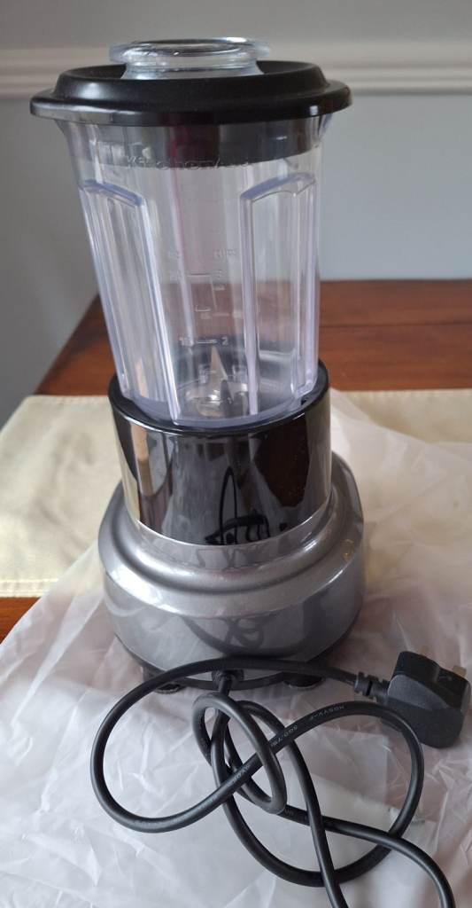 Dark grey, metallic finish, KitchenAid Blender. 750ml plastic jug only. The large glass jug has been broken, but is still available to buy as a spare part.