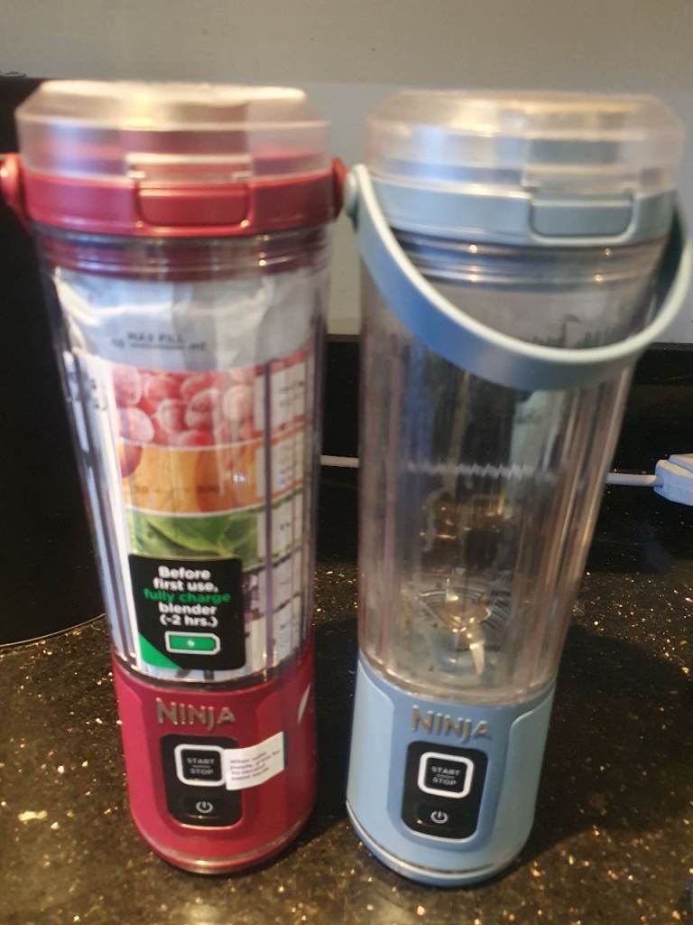 For sale 2 x ninja portable blender red one never used blue one used twice like new