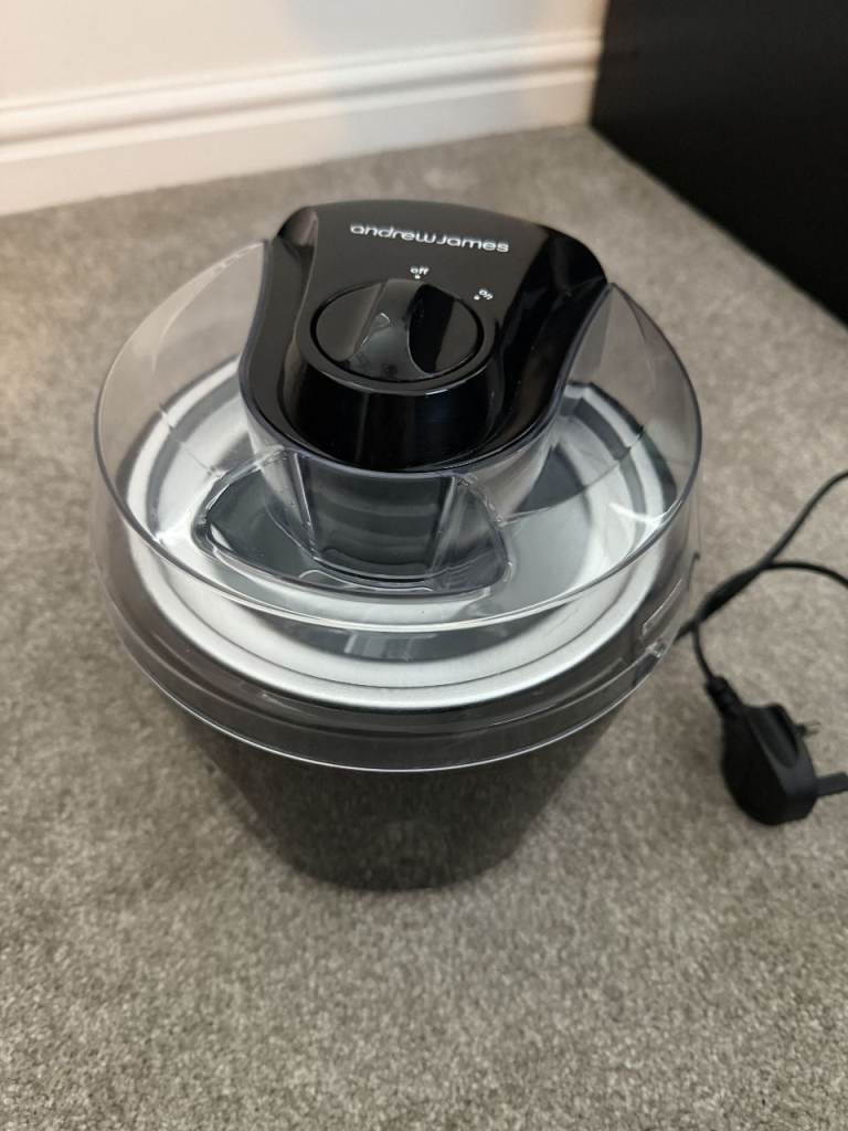 Andrew James Ice Cream Maker 1.5L & 1x Cafe Dairy 2L commercial soft scoop ready mix which are £14.99 RRP each. Ice cream machine has been used a few times in the past year and is in excellent condition, working perfectly. Collection only from Irvine.