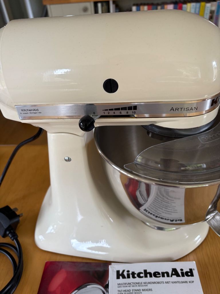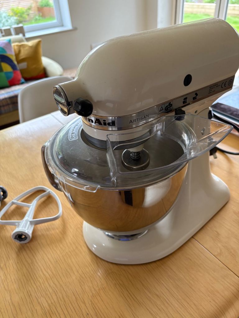 Up for sale is a KitchenAid Artisan 4.8L Stand Mixer in cream.