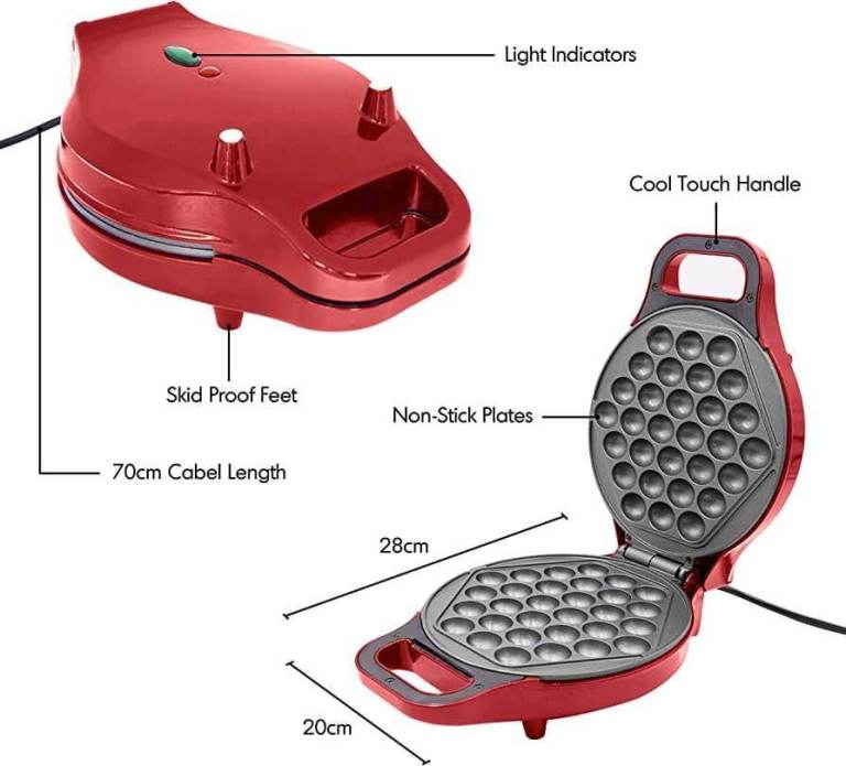 THERMOSTATICALLY CONTROLLED – Smart technology allows for the perfect bake every time, and the cool to touch handles ensure the bubble waffle maker doesn’t get too hot to handle.