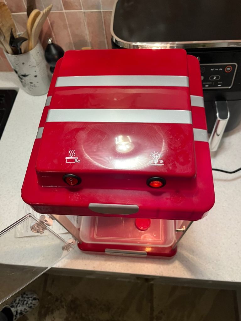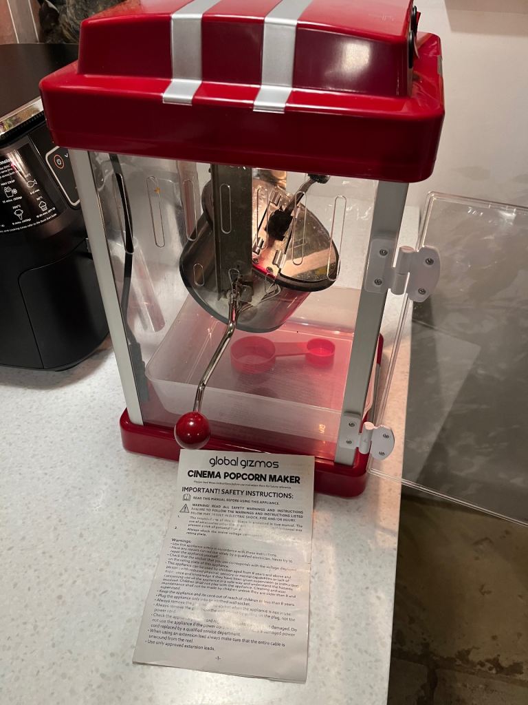 Fun popcorn maker, only used once for a party. 43cm h x 28cm w x 24cm d