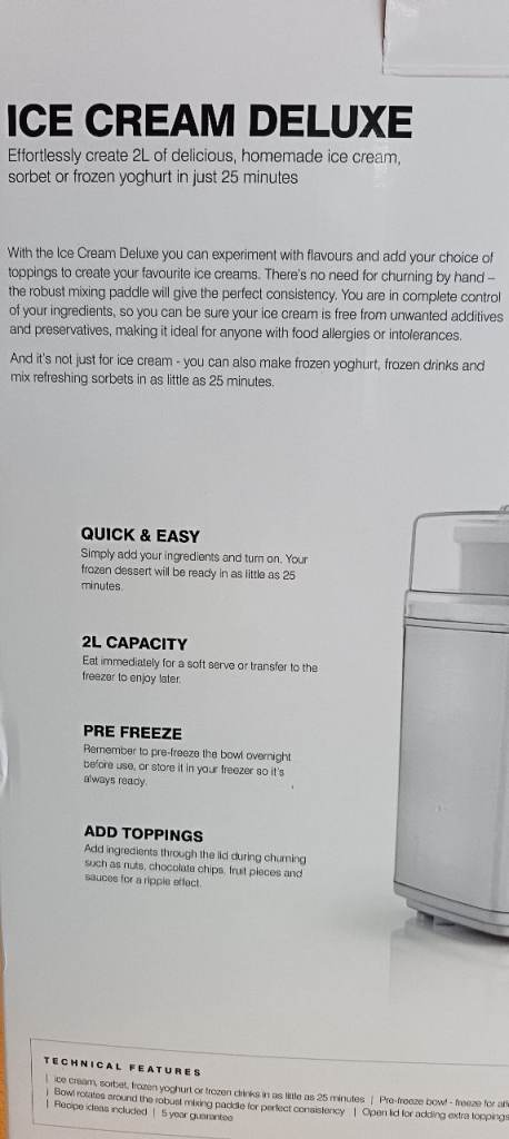 Effortlessly create 2L of delicious, home made ice cream, sorbet or frozen yoghurt in just 25 mins