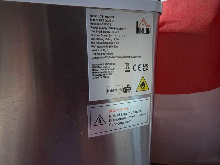 HOMCOM Ice Maker Machine Counter Top Ice Cube Maker for Home 20kg in 24 Hrs