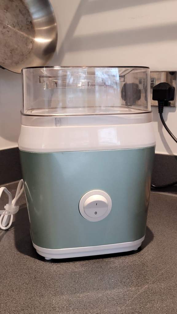 Ice cream and iced desserts maker. Great condition. With the original book of recipes. So good and practical to make recipes without preservatives and other chemicals! Tastier than fancy supermarket ones (definitely!). Easy to clean.
