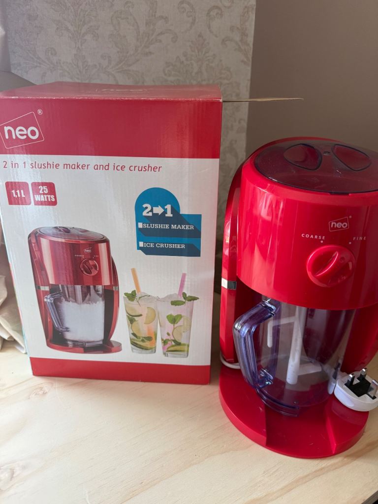 Used Neo 2-in-1 slushie maker and ice crusher, in working order with its original box.