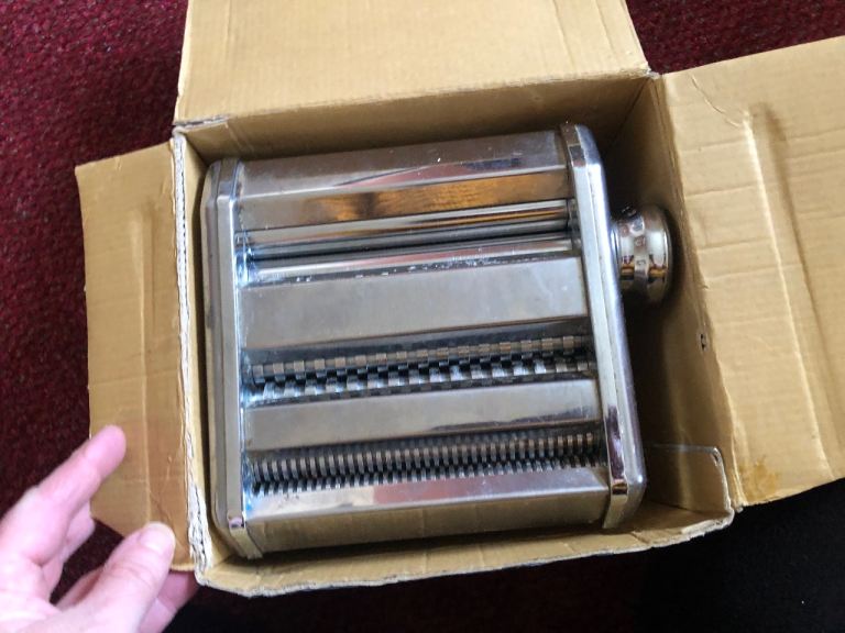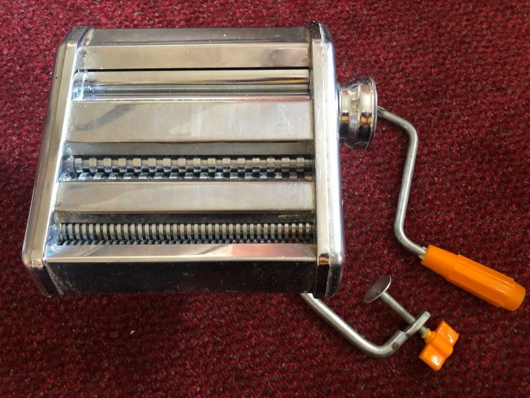 Nice sturdy pasta maker - various sizes and types including lasagne sheets, tagliatelle and spaghetti. Clamps to a table or kitchen surface area to keep nice and smooth running. Comes with turning handle. Ideal for family fun or impressing your dinner guests. Is fully functional. Just been in storage and needs a bit of a clean. Please collect ***open to offers***