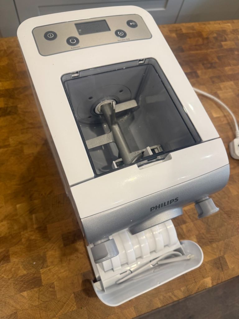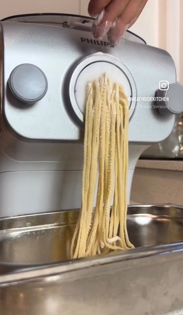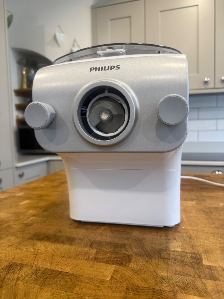Add flour to the top and then stream in egg and water and make delicious fresh pasta in minutes. Comes with 5 attachments for different pasta shapes- great quality and super easy to use and easy to clean as well! We are moving soon and just no longer need it.