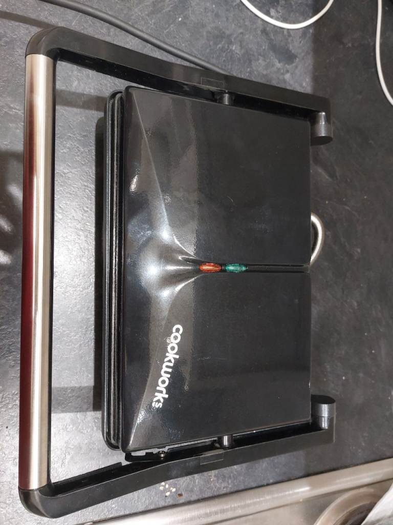 Cookworks sandwich toaster bought on Argors (reference: Cookworks 2 Portion Panini Press - Black). Hardly ever used