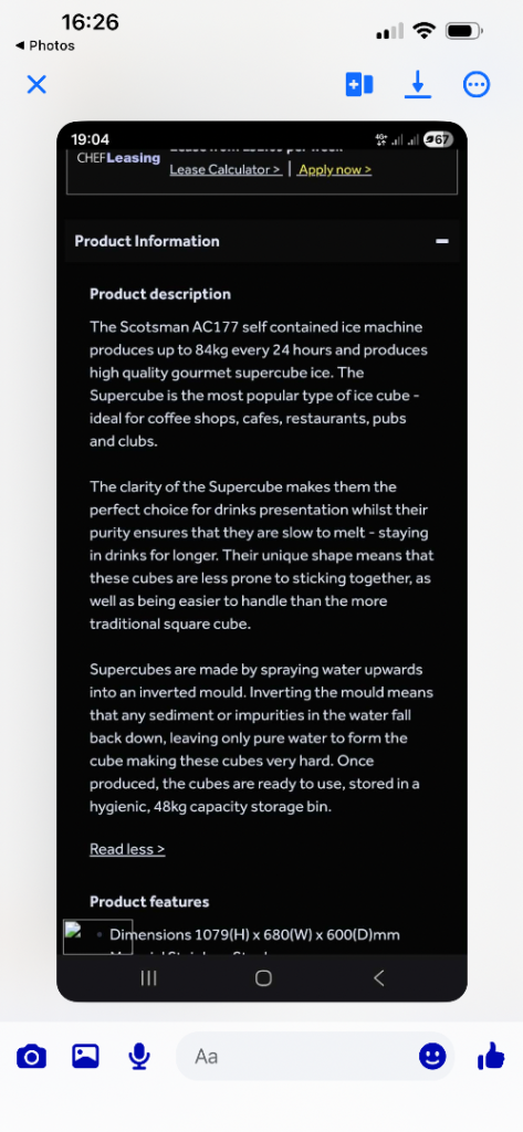 Posting for under a monthScotman self contained ice maker ac177 84kg