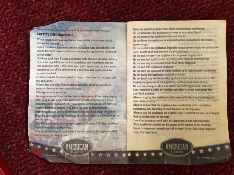 Waffle maker - complete with instructions- fully working