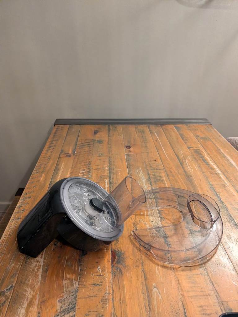 It is a complete kitchen workhorse in good used condition, the motor runs smoothly, and all attachments fit securely.