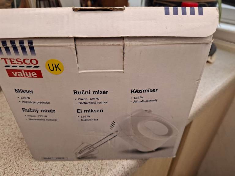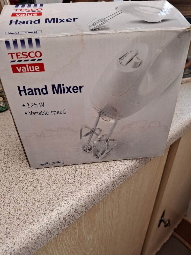 Tesco value Electric Hand mixer..still in box with instructions was stored in cupboard. Used once or twice. In excellent condition. Cash on collection Buyer to collect from Edmonton London N9.