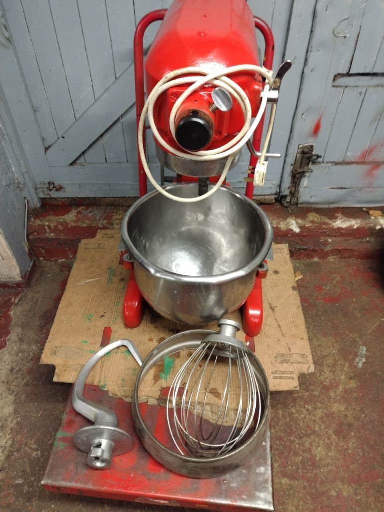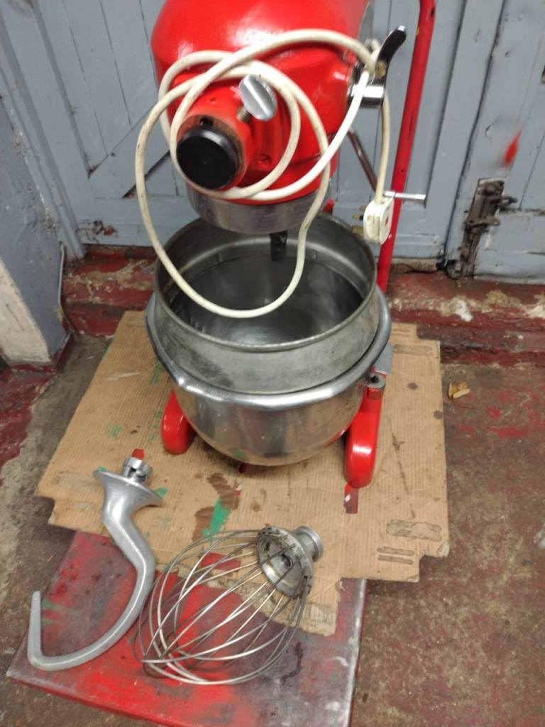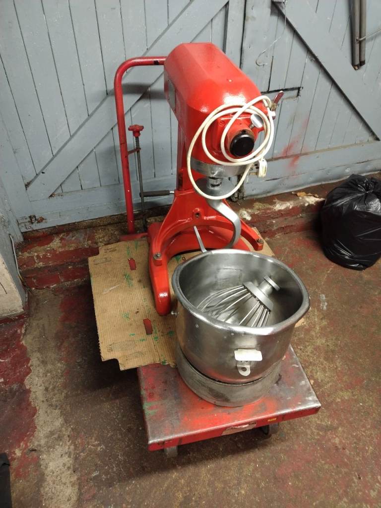Hobart AE200 planetary mixer machine single phase, 3 gear isolator and switch on and off, and run well, working condition comes with hook & whisk attachment, bowl and cover 20 litre