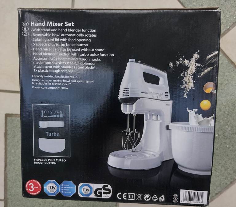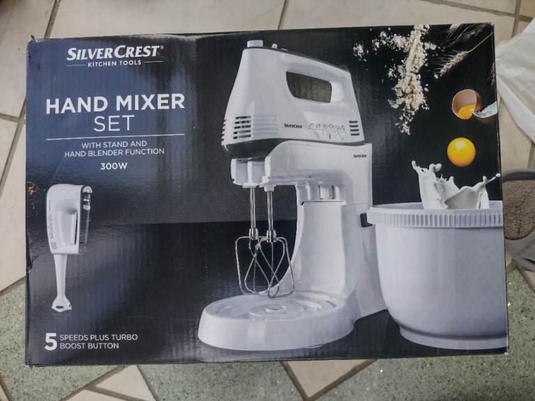 The Silvercrest Hand Mixer Set (Model SHMS 300 C2) is a 300W versatile kitchen tool available via Kompernass or Lidl. It includes a motorized hand mixer with 5 speeds and a turbo button, a rotating mixing bowl (approx. 2.5L capacity), and accessories, featuring stainless steel beaters and dough hooks.