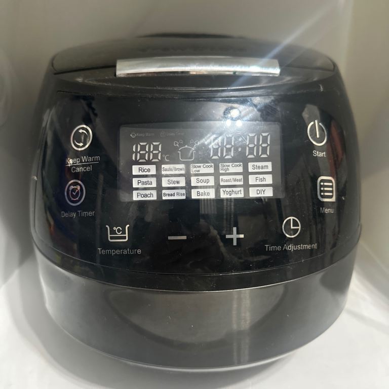 Like new, 1000W, Includes 3 mixing attachments: a flat beater, whisk and dough hook. Speed settings 1 to 8 and a pulse function.