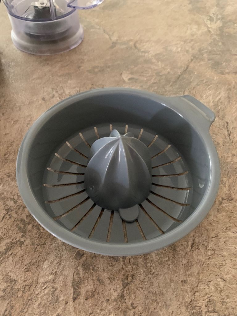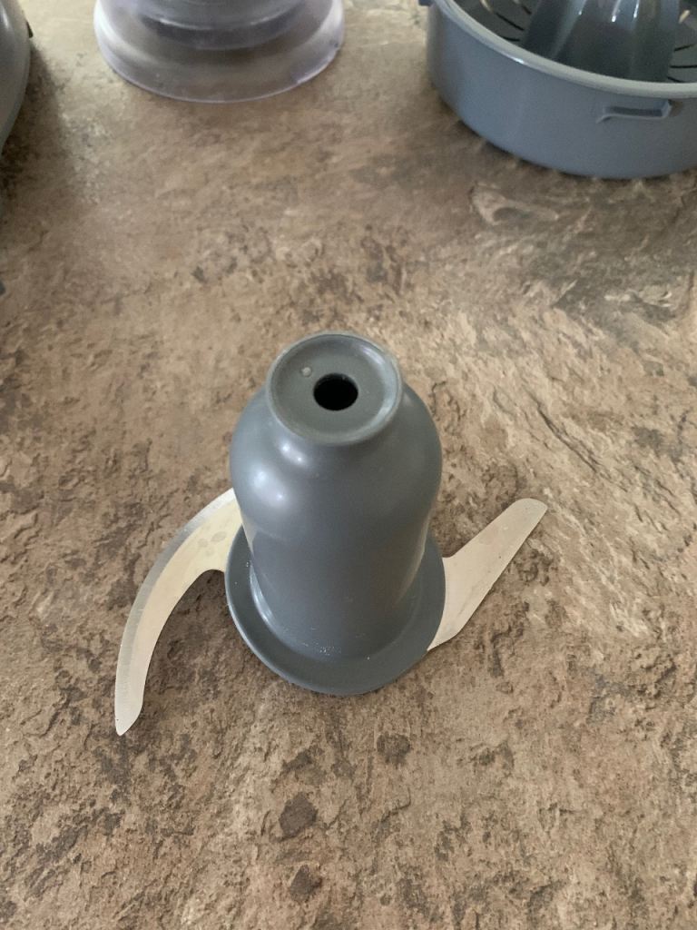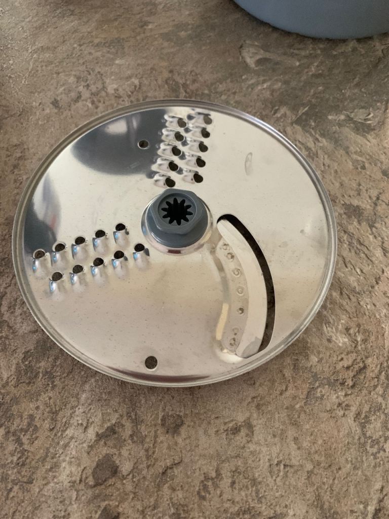 Food processor has bowl, lid, pusher, knife blade, thick slicing/coarse grating disc, emulsifying tool and citrus juicer. Blender jug complete with lid and cap.