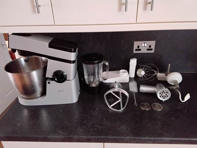 Kenwood major electronic food processor, including 6ltr s/steel bowl glass jug blender, mincing facility bread hook & whisk & others etc see pics. I bought this but have only used the blender, perfect for soups/ smoothies or for someone who makes.