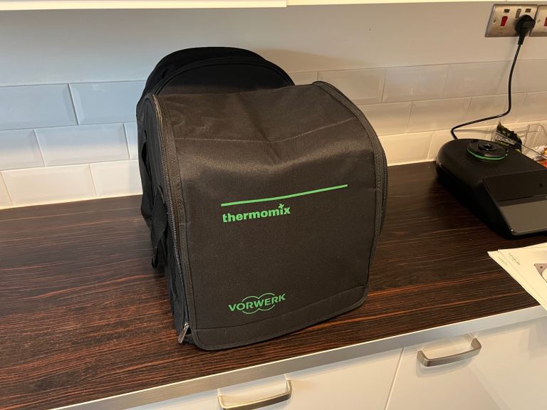 Comes complete with base unit, mixing bowl, steamer insert, whisk, Varoma (steamer section), steam basket insert, Cook Key (for uploading recipes) and official Thermomix travel bag.