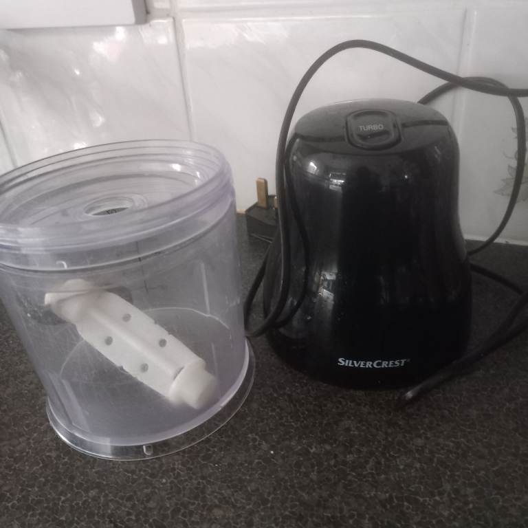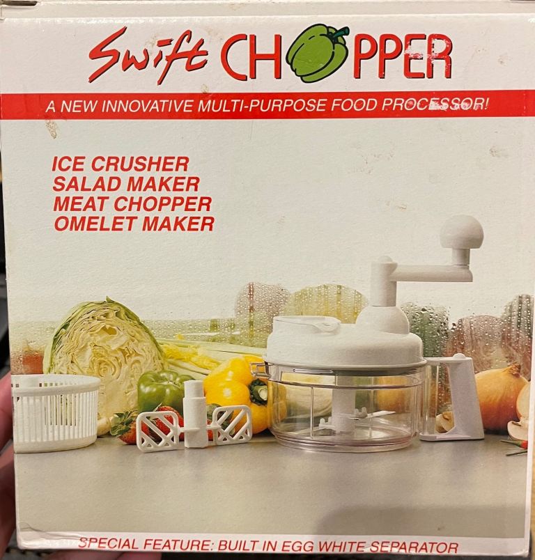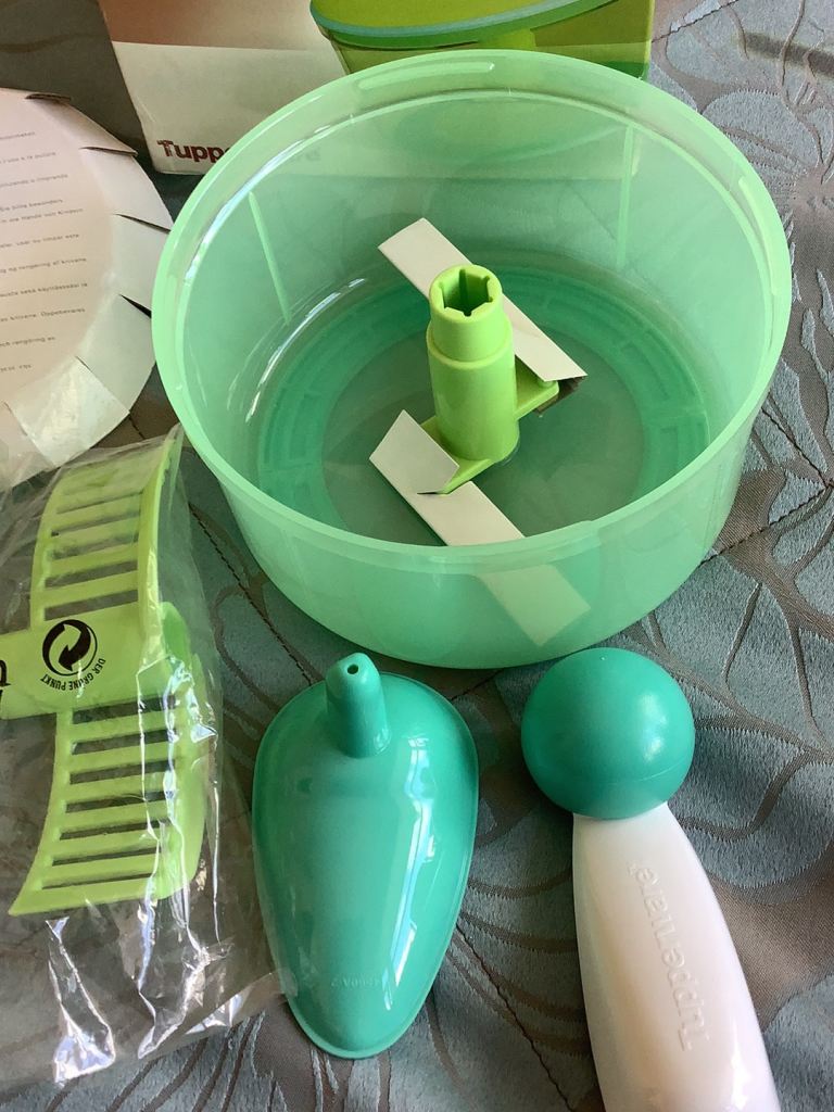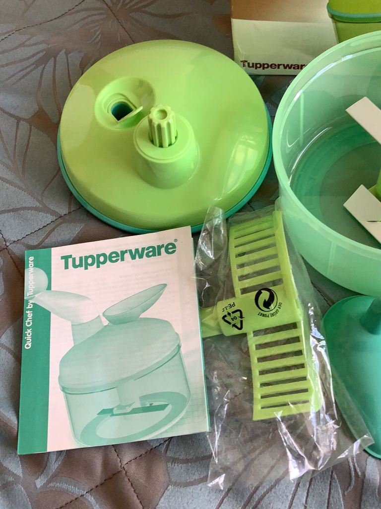 A Tupperware Quick Chef hand food processor with blade and whisk attachment.