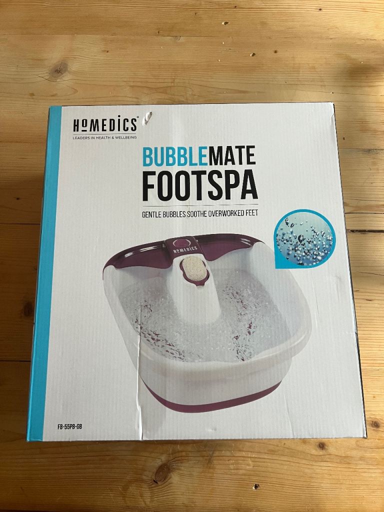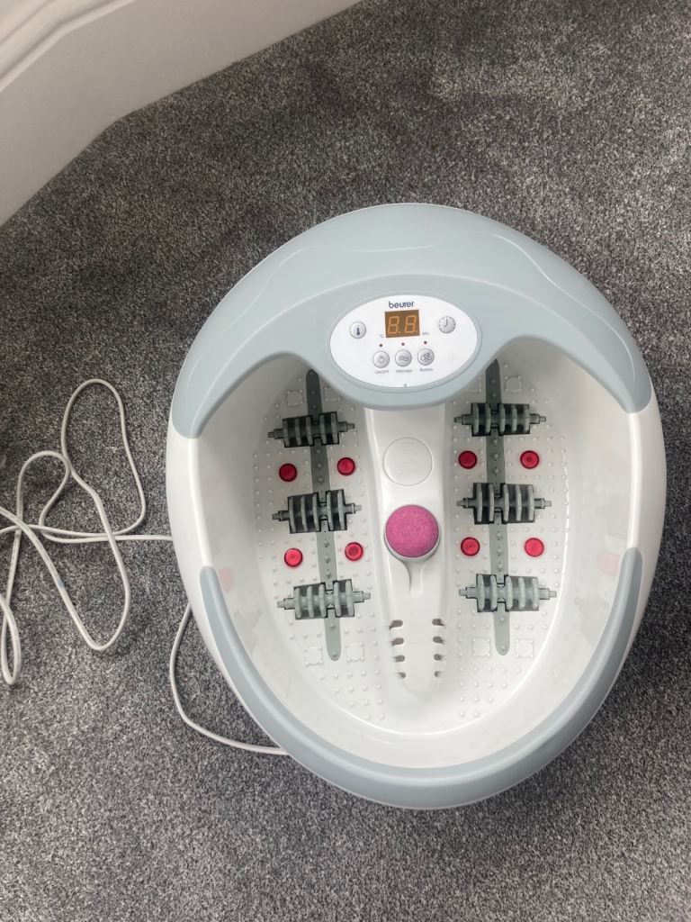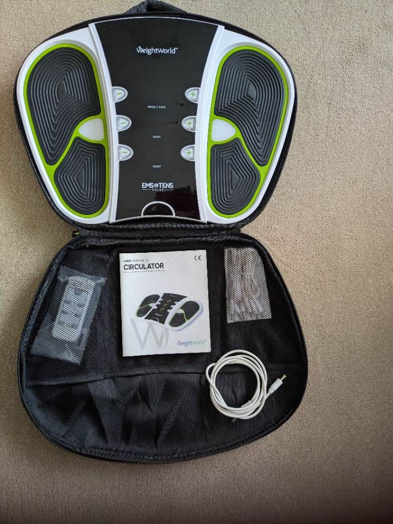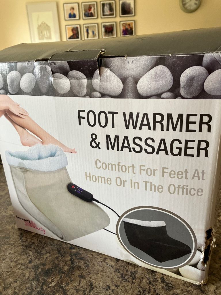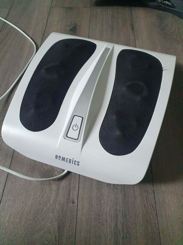 Electric foot massager, with multiple heat, pressure, strength, and massage style options. Inserts are easily unzipped and can be machine washed (have been washed in preparation for sale). Includes a battery-powered remote so it's easy to choose just the right setting.
