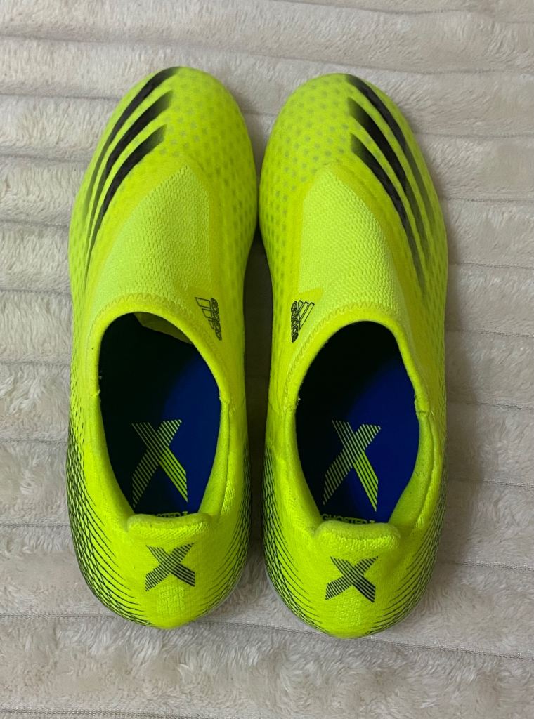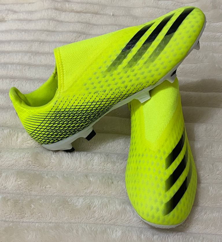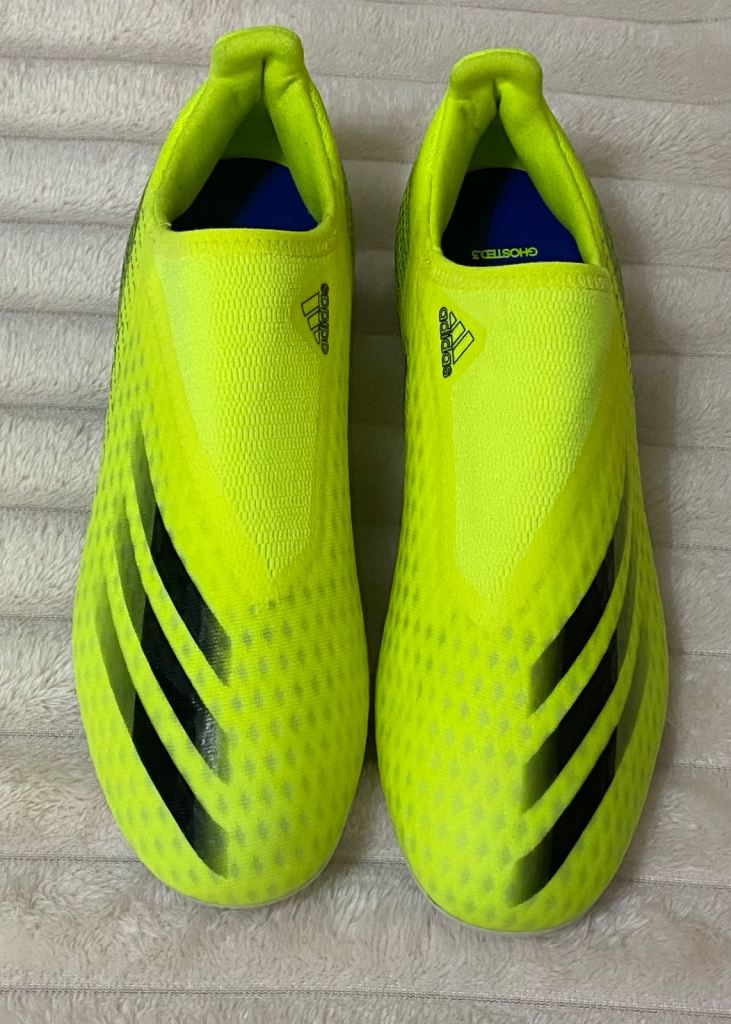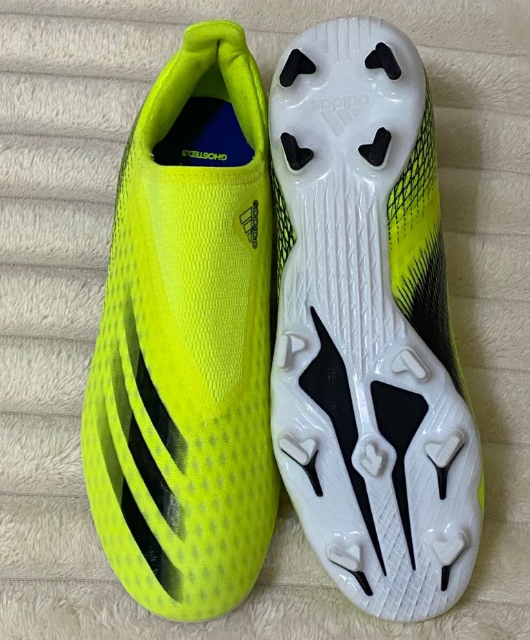 The product is a pair of brand new Adidas X Ghosted.3 in the solar yellow colourway these laceless football boots are size 7.5 uk men’s . These boots feature moulded studs on the sole, making them ideal for playing on firm ground. The colour of the boots is solar yellow, part of the Adidas X product line. With no option for personalisation, these boots are perfect for football enthusiasts looking for high-quality, stylish footwear to enhance their game on the pitch.