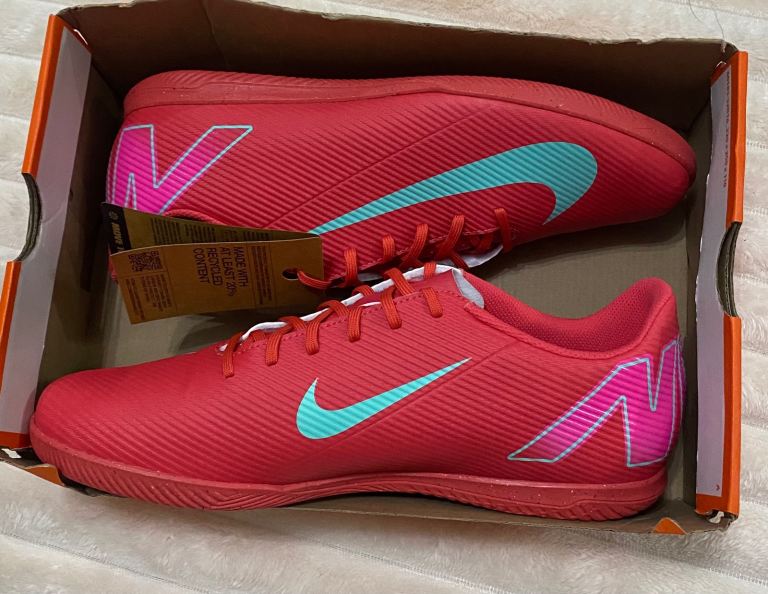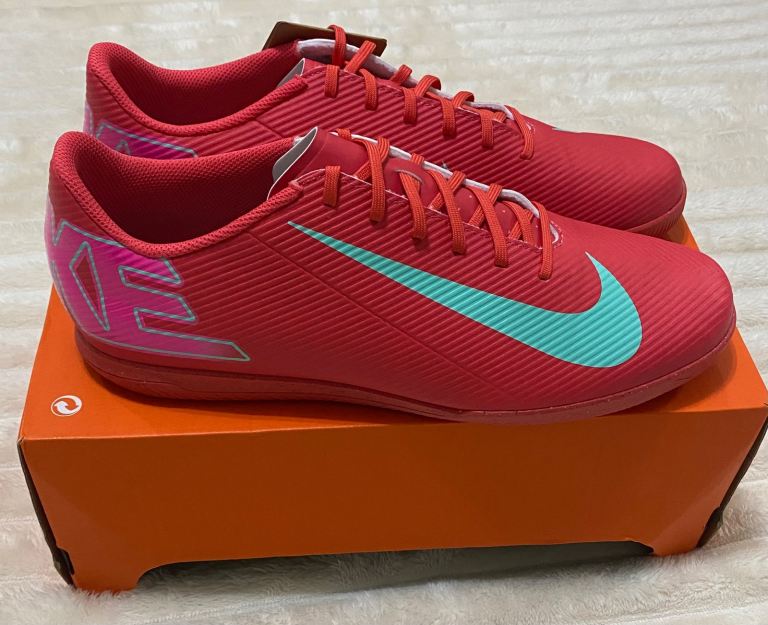 The Men's Nike Mercurial Vapor 16 Club Astroturf football boot in size 10.5 is a brand new half box item in red colour. Designed with Astro soles, this football boot is ideal for playing on astroturf surfaces. The Mercurial Vapor 16 Club model from Nike features a sleek design and quality construction for performance on the football pitch. Whether you are a beginner or a seasoned player, this boot is sure to enhance your game on the field.
