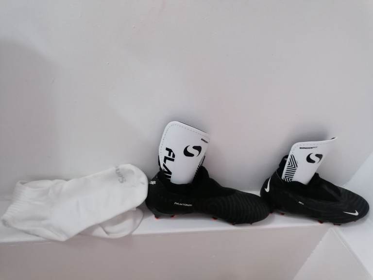 Nike phantom gx football boots, shin guards and socks