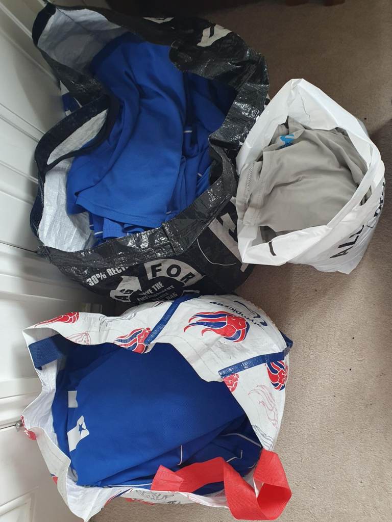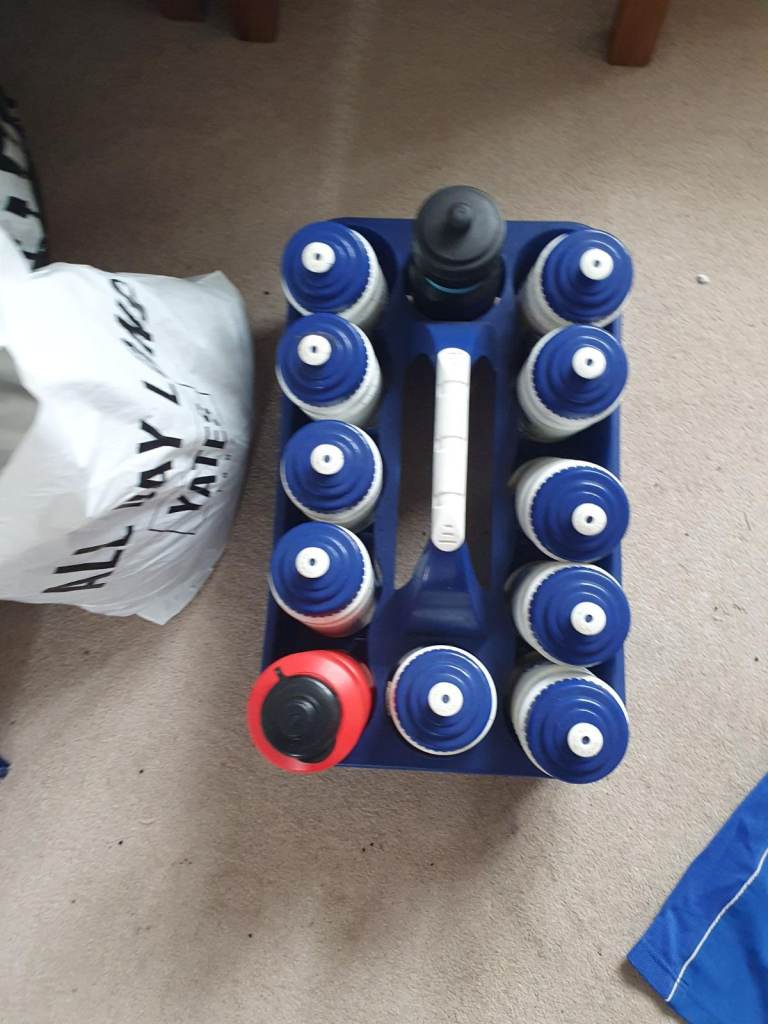 Contains 10 Blue shirts, 1 gold keeper top, 12 shorts, 10 blue socks, 2 padded goalkeeper shorts, 1 shin pads, 12 water bottles and holder. 11 Cardiff half training tops.