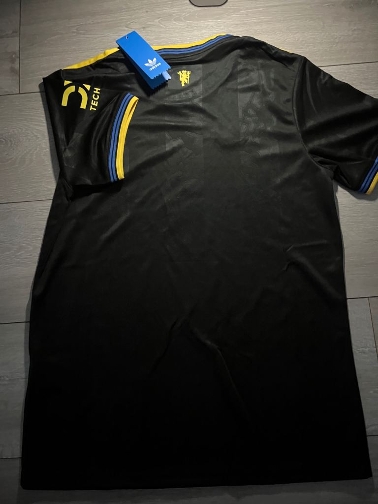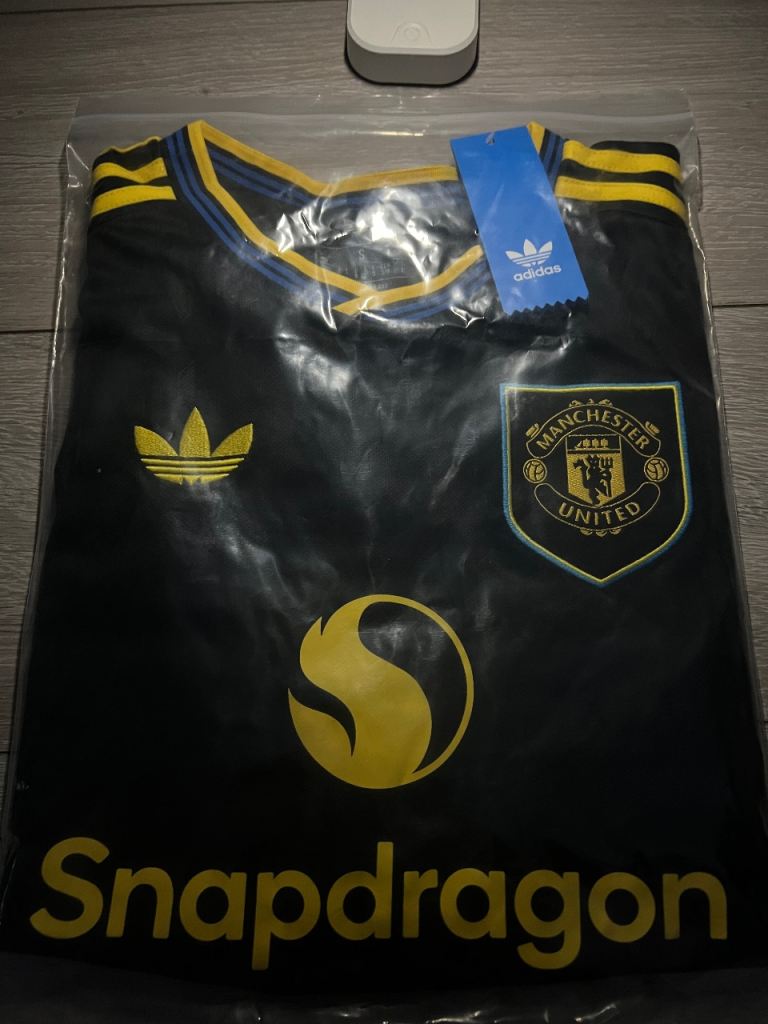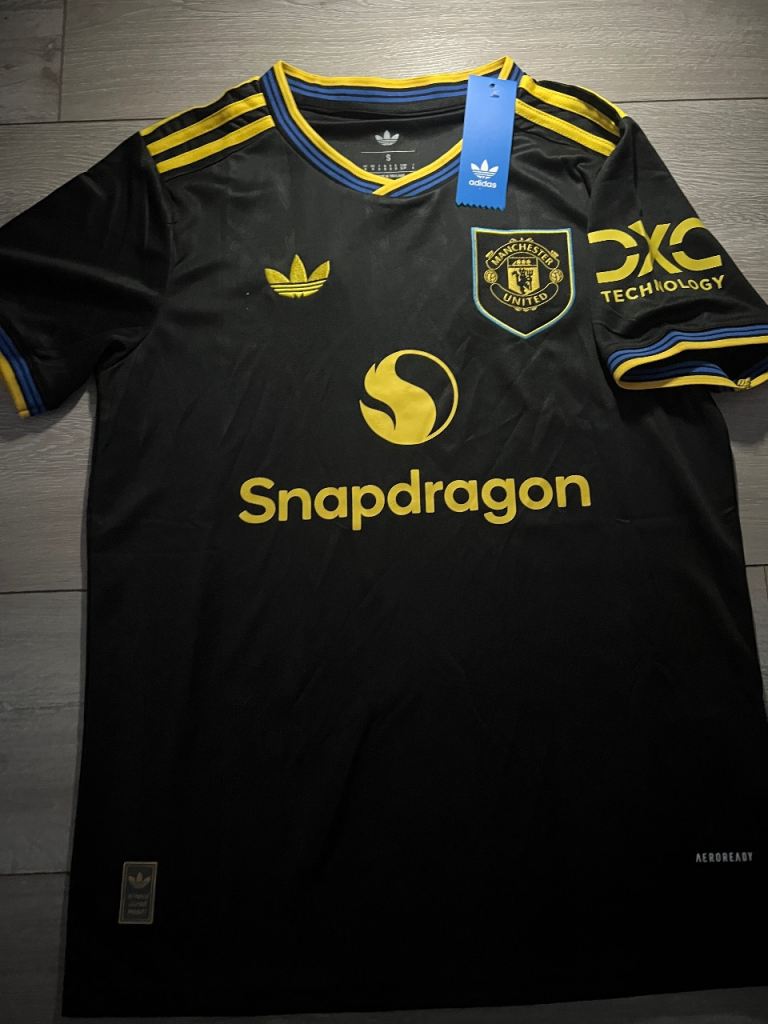 Brand new Man United 25/26 black & gold style shirt, still with tags attached. Size S. Features a sleek modern design with embroidered-style details and high-quality material. Looks amazing in person and feels great to wear.