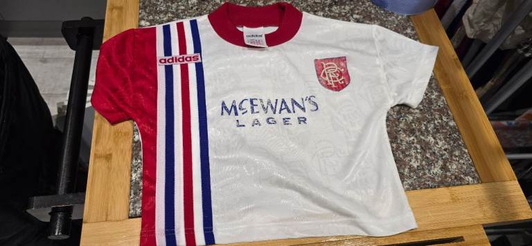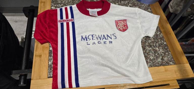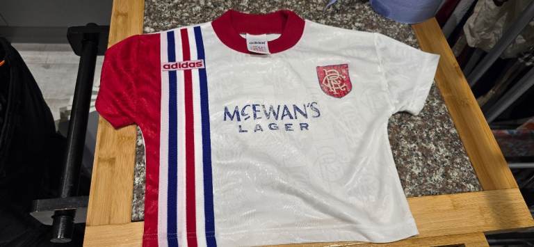 Rangers kids football tops top top condition for age 👌 £90 for both wife washed them in wrong wash and 1 came out with badge faded