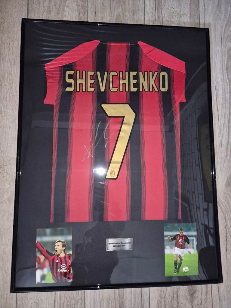 Andriy Shevchenko signed AC Milan shirt in frame with proof and COA. Frame size 80x60cm