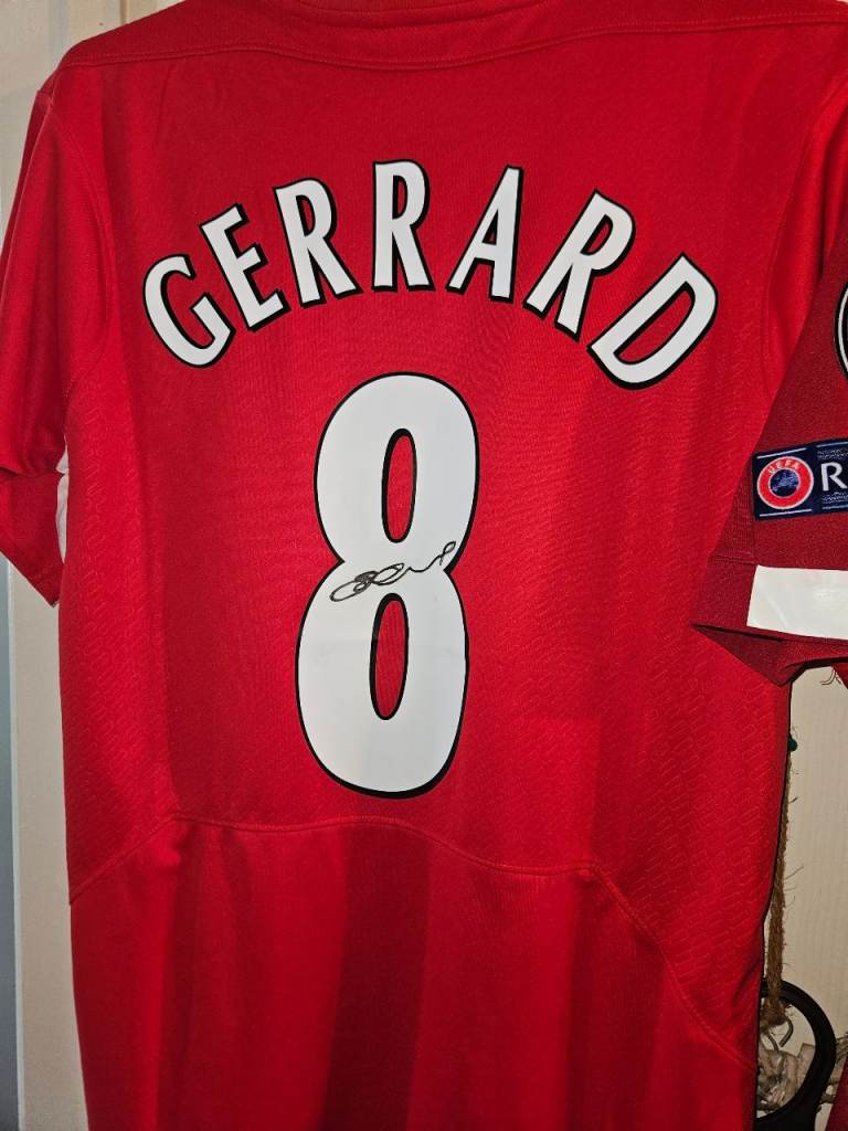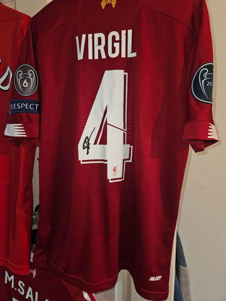3 liverpool signed shirt with c.o.a Gerrard 2005 Istanbul reebook shirt mo salah 2025/2026 signed shirt and virgil van dyjk shirt 2019/2020 shirt selling as a joblot un framed £320 0n0