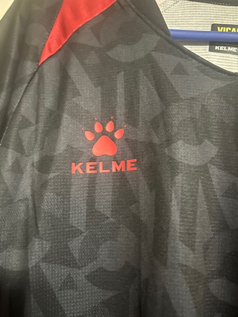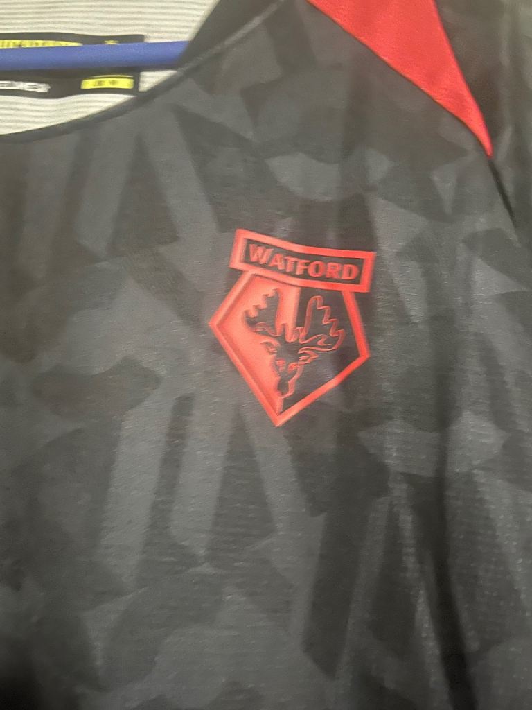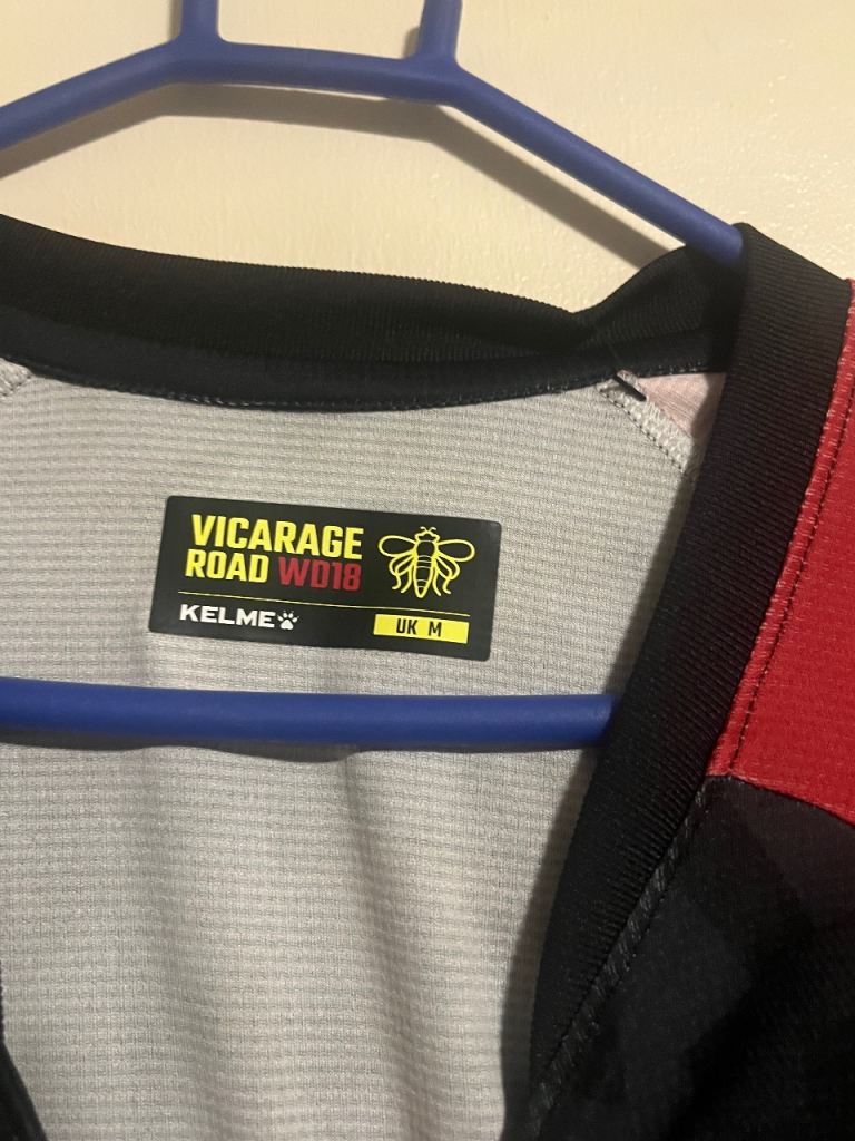 Black and red Watford football shirt by Kelme, size M.
