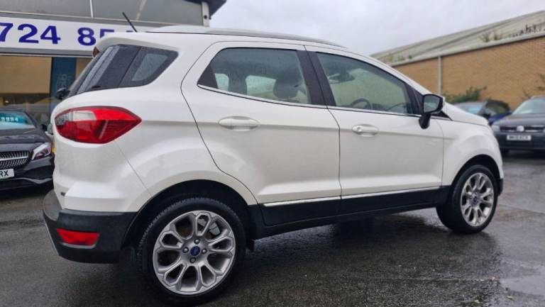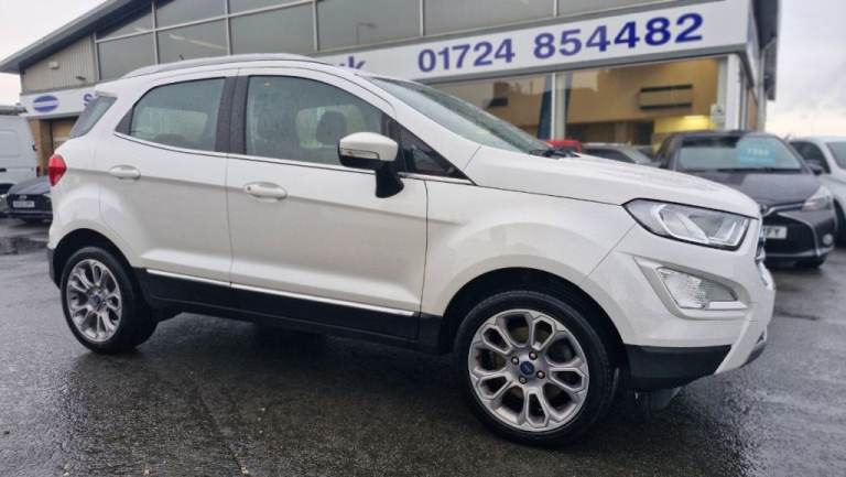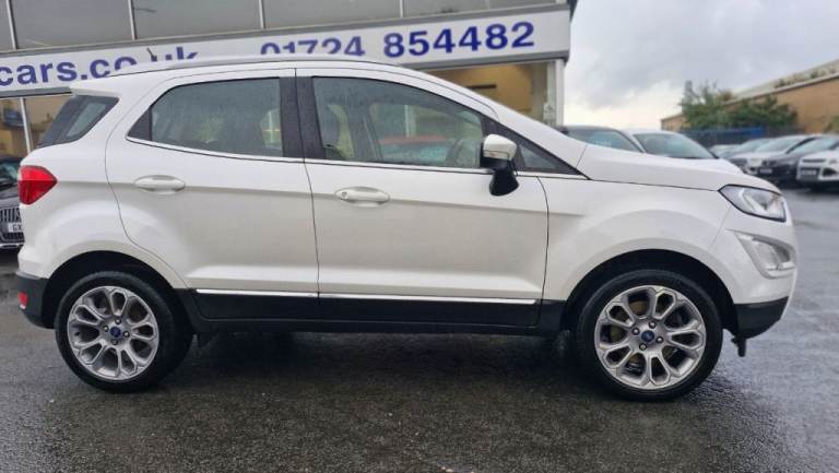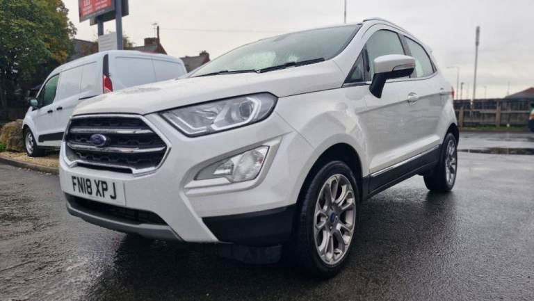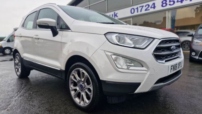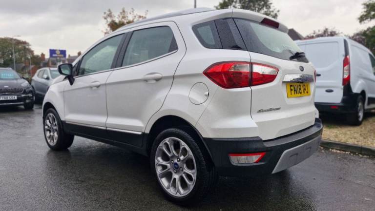 MOT SEP 2026, 5 SERVIVES INC 4 FORD, NAV, PARKING PILOT, REAR CAMERA, LEATHER, BEAUTIFUL EXAMPLE! The 2018 Ford EcoSport T Titanium, a well presented example ready for its next owner. This stylish compact SUV is powered by an efficient 1.0L petrol engine, meeting Euro 6 emissions standards. Inside, you'll find a host of convenient features designed to enhance your driving experience, including automatic headlights that illuminate the road ahead, and a Ford DAB Navigation System with Ford SYNC3, offering seamless integration with Android Auto and Apple CarPlay, plus Bluetooth connectivity for calls and music. Parking is made simple with a rear view camera and rear parking sensors, complemented by electronic automatic temperature control for a comfortable cabin environment., , This Ford EcoSport stands out with its impressive fuel economy, achieving a highlight of 53 miles per gallon, making it an economical choice for your daily journeys. Its low CO2 emissions further contribute to its appeal as a more environmentally conscious option. These highlights demonstrate how this particular EcoSport T Titanium offers a compelling blend of practicality, technology, and efficiency compared to other vehicles in its class., Next MOT due 16/09/2026, Last serviced at 45,919 miles, Full service history, Good bodywork, Black Part leather interior - Good Condition, Tyre condition Good, 5 seats, White, 2 owners, 17in Alloy Wheels - 10 Spoke Flash Grey Machined, Adjustable Boot Load Floor, Airbags - Curtain, Airbags - Driver and Front Passenger, Airbags - Drivers Knee, Airbags - Front Passenger De-Activation Switch, Alarm - Thatcham Category 1 with Volume Sensing and Perimeter, Ambient Lighting - Instrument Panel and Footwell, Analogue Instrument Cluster, Anti-Lock Braking System - ABS with Electronic Stability Control - ESC, Automatic Dimming Rear View Mirror, Automatic Headlights, Centre Console Cup Holder with Chrome Accent, Centre Console with Sliding Armrest, Child Locks, Chrome Headlight Bezel, Courtesy Light - Front with Two Map Lights, Courtesy Light - Rear, Cruise Control, Door Frame Beltline - Chrome, Door Handles - Body Colour, Door Mirrors - Power-Foldable Heated with Integrated Side Indicator and Puddle Lights, Driver Seat Manual Height- Fore/Aft and Seatback Angle Adjustment and Recliner, Driver Seat Manual Rotary Knob Lumbar Support Adjustment, Driver and Passengers Sun Visor with Covered Vanity Mirror and Ticket Strip on Drivers Side, Drivers Stowage Glovebox, EPAS - Electric Power Assisted Steering, Electronic Automatic Temperature Control - EATC, Emergency Assistance, Engine Immobiliser, Ford DAB Navigation System with Ford SYNC3, Ford Easy Fuel - Capless Refuelling System, Front 2-Way Head Restraints, Front Fog Lights, Front Grille - Chrome, Front Seat - Passenger Manual - Fore-Aft and Recline Adjustment, Front Seats - 3 Point Seat Belts with Load Limiter and Seatbelt Height Adjust, Front Seats - Seat-Back Map Pockets, Front Suspension - Independent with MacPherson Struts and Anti-Roll Bar, Front and Rear Bumper - Body Colour with Dark Insert, Front and Rear Floor Mats, Front and Rear Folding Grab Handles, Front and Rear Power Points - 12V, Full Length Overhead Console with Sunglasses Holder, Gear Shift Indicator, Gearshift Knob - Black Insert and Chrome-Finish Ring, Glovebox with Cool Bin - Lid and Illumination, Halogen Headlamps with LED Day Running Lights, Halogen Rear Lights, Handbrake Grip - Leather-Trimmed, Headlights - Courtesy Delay, Headlights - Levelling Control, High Mounted Brake Light, IPS - Intelligent Protection System, Keyless Start with Ford Power Start Button, Load Compartment - Lights, Load Compartment Carpet, Load Compartment Side Trim Incorporating Shopping Hooks, Lower Body Side - Door Claddings - Black with Chrome Insert, Manual Parking Brake, MyKey, Power Front and Rear Windows with Global Opening-Closing, Quickclear Heated Front Windscreen with Heated Washer Jets, Rain Sensing Wipers, Rear Seat - Fold and Tumble 60-40 Split - Split Back, Rear Seats - Centre Head Restraint - Up-Down, Rear Seats - Retractable Rear Seat Belt - 3-Point All Positions, Rear Suspension - Semi-Independent Twist Beam with Twin Gas and Oil-Filled Shock Absorbers, Rear View Camera with Rear Parking Sensors, Remote Central Locking, Rocker Panel and Side Cladding - Black, Seat Belt Reminder System - Drivers and Front Passengers, Seats - ISOFIX Mounting Provision for Child Seats - Outer Seats Only, Side Impact Door Beams, Silver Roof Rails, Soft Instrument Panel Cover, Steering Column - Rake and Reach Adjustment, Steering Wheel - Leather-Trimmed with Chrome Inserts, Storage - Front Passenger Underseat Area, Suspension - Front Stabiliser Bar, Tailgate Handle - Chrome, Threshold Plates - Front - Stainless Steel with EcoSport Logo, Tie-Down Hooks, Trip Computer, Tyre Pressure Monitoring System, Tyre Repair Kit, Wiper - Intermittent Rear Wash-Wipe..