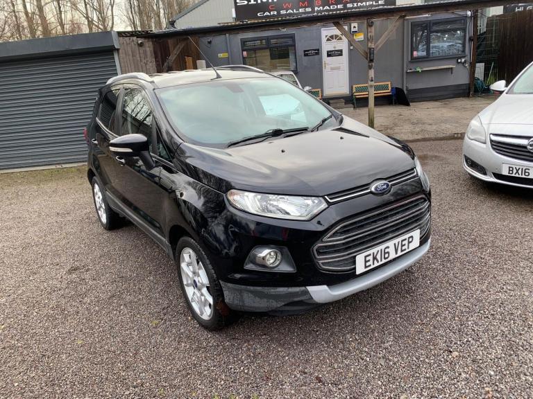 Here at Simple Motors Cwmbran we have this excellent example of a 2016 Ford EcoSport Titanium 1.5 TDCi Diesel Manual (5 Speed), which has been well maintained and has had just 2 previous owners.This practical and economical SUV comes packed with features including keyless entry, automatic headlights, and automatic climate control, while meeting the Euro 6 emissions standard.This vehicle is very clean inside and out, drives extremely well with no issues at all, and has just been serviced with oil and filter. It also comes with a brand new 12-month MOT for added peace of mind.Offering excellent fuel economy of up to 64 MPG, it has covered 84,543 miles and is ready to drive away today for just 4,995!Check the full video below All our cars, including this one, are sold with 3 Months Warranty 6, 12 or 18 Month Extensions Available! Why buy a car from Simple Motors Cwmbran? Every Car is Price Checked Excellent Variety of Warranties Available HPI Clear PDI Checked New / Long MOT Full Valet Brand New Oil & Filter Service View and inspect vehicles in our bright, undercover area Rain or Shine.We sell high quality, used vehicles at the BEST Value!Simple Motors Cwmbran are a specialist used car dealer based in Cwmbran, South Wales. We pride ourselves on personal customer service and very competitive pricing, so please browse our stock list.PLEASE NOTE To avoid any disappointment, please call prior to arrival to ensure the vehicle you are interested in has not been reserved by another customer and is on site available for viewing!