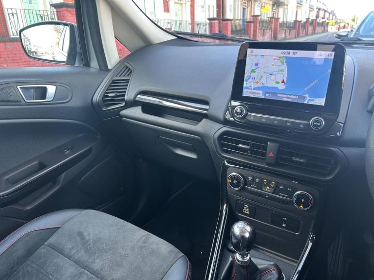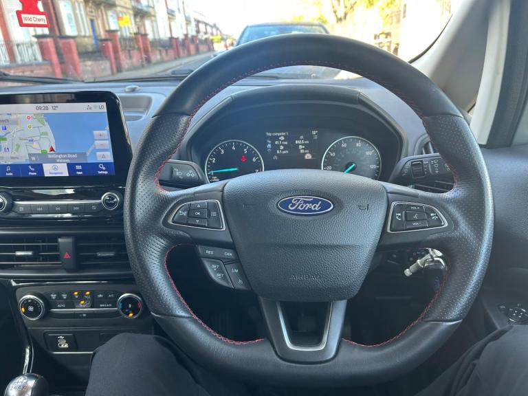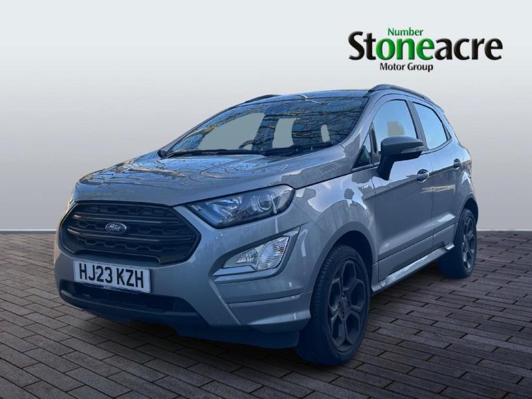 This 2023 Ford EcoSport T ST Line presents a superb opportunity, having had only one owner since new. This stylish SUV is powered by an efficient 1.0 litre petrol engine, meeting Euro 6 emissions standards. Inside, you'll find the user friendly Ford SYNC 3 Navigation system complete with an 8 inch touchscreen, offering seamless integration with Android Auto and Apple CarPlay. For added convenience and safety, it includes a Rear View Camera Pack with parking assistance and rear sensors, alongside Electronic Automatic Temperature Control for effortless climate management. The vehicle also benefits from automatic headlights with LED low beam functionality, ensuring optimal visibility in all conditions.With an impressive fuel economy of 46 miles per gallon, this EcoSport T ST Line demonstrates excellent efficiency, making it a cost effective choice for your daily journeys. Its low CO2 emissions further highlight its environmental consideration compared to many other vehicles in its class. This combination of advanced technology, practical features, and economical performance makes the 2023 Ford EcoSport T ST Line a compelling option for those seeking a well equipped and well maintained compact SUV.