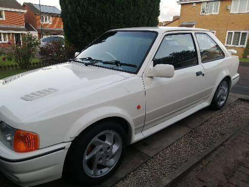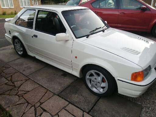 Hi I am very pleased to offer for swap or cash sale this amazing Escort RS Turbo st 170 2.0 16v recreation This boy racers dream is finished in Diamond White with Grey Recaro Seats. The specification consists of Alpine Radio CD System with USB Connection, sports Leather Steering Wheel, Upgraded Engine Mounts, new oils, ST 170 Conversion, drum Rear Brakes, Mongoose Stainless Steel Sports Exhaust, STELTH Alarm System, Lighted Flywheel, New HT Leads, back yellow shocks ,droped springs and black Water Hoses, New Clutch, New Water Pump and Timing Belt, rs Alloy Wheels finished in silver . The car is in good condition for year start and runs and drives superb. There is lots of history with the car cheap tax and long mot Please email me to view a vehicle in order to check that it is still available if the add still on its still here, please email me to make arrangements thanks quick sale today £10495 or swap for a 12k car or cheap car cash my way thanks