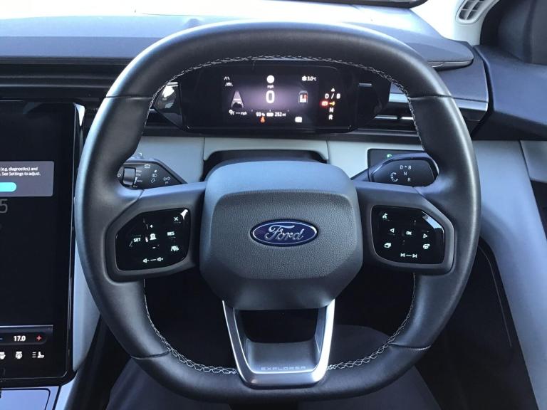 This 2024 Ford Explorer Extended Range Select is a superb example, having had only one owner since new. This electric SUV offers an impressive battery total capacity of 82 kWh, providing a maximum range of 374 miles on a full charge. Convenience is key with features like keyless entry and start, alongside inductive wireless phone charging. For enhanced comfort, the driver and passenger seats are heated and include a massage function, with the driver's seat also offering 12 way power adjustment and memory settings. The LED headlamps with automatic high low beam ensure excellent visibility in all conditions.Experience exhilarating performance with the Ford Explorer's rapid 0-62mph acceleration in just 6.4 seconds, a clear indication of its dynamic capabilities compared to other vehicles in its class. Recharging is efficient, with a full charge at home on a 7kW charger taking approximately 8 hours and 51 minutes, and a rapid public charge from empty to 80% achievable in a swift 32 minutes. This Extended Range Select model truly stands out, offering a compelling blend of electric performance, advanced technology, and exceptional comfort for your journeys.