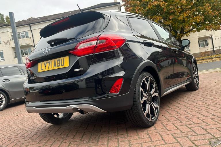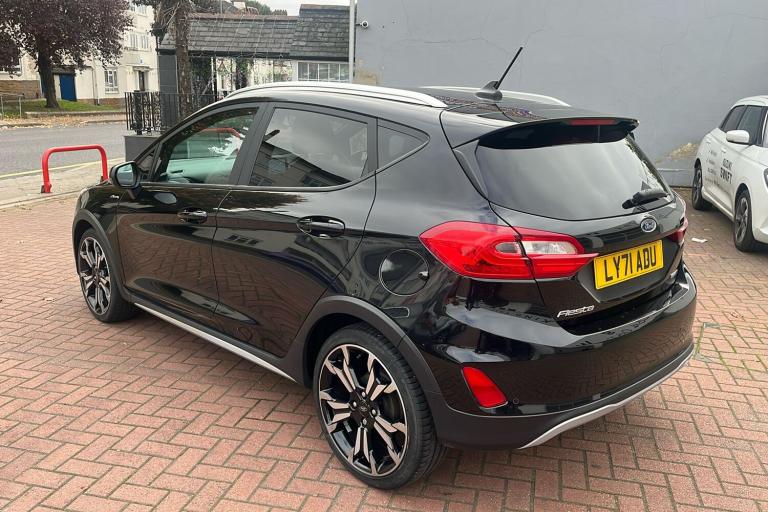 Presenting this used Ford Fiesta Active X Edition first registered in December 2021 and finished in striking black. This stylish hatchback offers a responsive drive with a 1.0 mild hybrid petrol engine combining efficiency and performance. With an impressive combined fuel economy of 57.6mpg and a maximum speed of 126mph it’s a versatile choice for both city and motorway journeys. Inside you’ll find thoughtful touches including 18-inch alloy wheels with a shadow black machined finish a premium in-car sound system wireless charging and customisable drive modes to suit every trip. Practical features like rear parking sensors and robust body styling provide confidence and comfort wherever you go. With a spacious boot of up to 1093 litres when the seats are folded this five-door five-seat Fiesta is a smart option for families and those on the move. ULEZ compliant for peace of mind in London and other clean air zones.