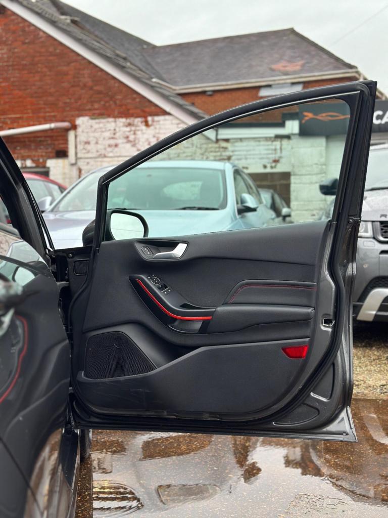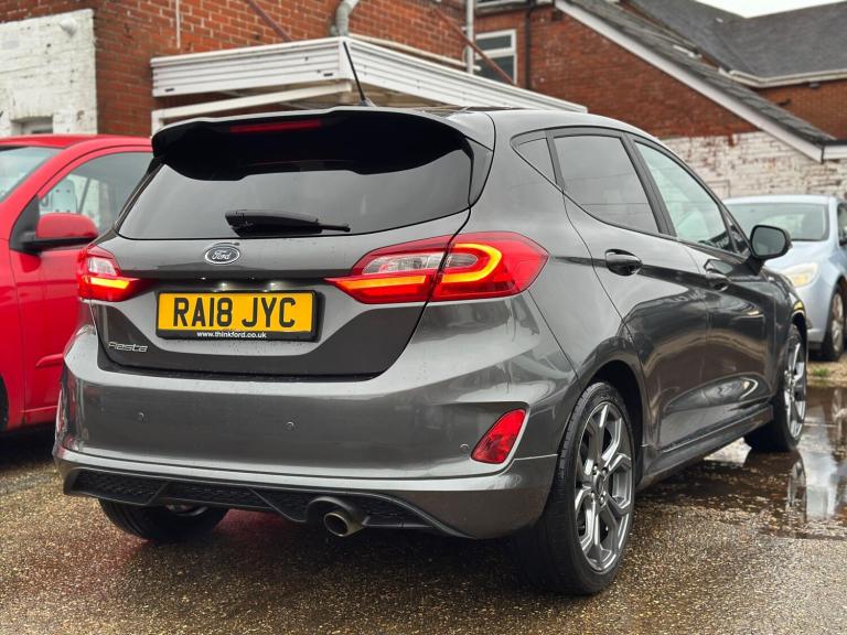 This 2018 Ford Fiesta ST-Line X offers an exceptional blend of style and technology, making it a standout choice. Powered by an efficient 1.0L petrol engine and meeting Euro 6 emissions standards, this model is equipped with the desirable Driver Assistance Pack, featuring adaptive cruise control for relaxed journeys. Inside, you'll appreciate the partial leather ST-Line X Red Pack, creating a distinctive black interior with red accents, complemented by striking 18 inch Rock Metallic alloy wheels. Navigating and staying connected is effortless thanks to the Ford Navigation System with Ford SYNC 3, which seamlessly integrates Apple CarPlay and Android Auto. For added convenience, rear parking distance sensors are also included.Experience impressive efficiency with a highlight fuel economy of 58 mpg, alongside low CO2 emissions, demonstrating this Fiesta's commitment to responsible driving. Its brisk acceleration, reaching 0-62mph in just 10.6 seconds, shows that efficiency does not compromise performance. These highlights indicate that this particular Ford Fiesta ST-Line X provides a superior driving experience compared to other vehicles in its class, offering a compelling package of modern features, economical running costs, and engaging performance.