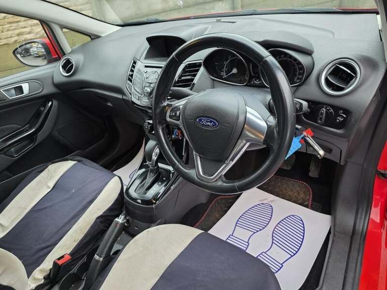 Active City Stop,Candy Red,City Pack, Ford DAB with Ford SYNC, Power Point Socket - 12 V, Trip Computer, Tyre Pressure Monitoring System, 15in Alloy Wheels - 5x2 Spoke, Bumpers - Front and Rear Body Colour, Door Handles - Body Colour, Door Mirrors - Electrically-operated and Heated - Integrated Side Indicators - Body Colour Housing, Electrically-Operated Front Windows with One Touch, Front Lower Grille Insert - Black, Front Upper Grille - Chrome Finish Surround, Front Upper Grille Insert - Chrome bars, Locking Wheel Nuts, Quickclear Heated Windscreen, Rear Spoiler - Body Colour, Tailgate Handle - Body Colour, Tinted Glass, Tyre Repair Kit, Front Fog Lights - Chrome Bezel Rings, Halogen Projector Headlights with Silver Surrounds and LED Daytime Running Lights, Headlights - Courtesy Delay, High-Mounted Rear Brake Light, Ambient Lighting, Centre Console, Courtesy Light - Front with Map Reading Lights, Courtesy Light - Overhead with Theatre-Style Dimming, Courtesy Light - Rear, Footwell Lights - Driver and Passenger, Gearshift Knob - Leather, Glovebox - Illuminated, Interior Door Lever - Chrome Finish, Leather-Trimmed Handbrake, Loadspace Compartment Light, Loadspace Floor Carpet, Manual Air Conditioning, MyKey, Pollen Filter, Removable Package Tray, Seats - Drivers 4-Way Manual Adjustment, Steering Column - Rake and Reach Adjustment, Steering Wheel - 3 Spoke - Leather Trimmed, Wipers - Front Variable Intermittent, EPAS - Electric Power Assisted Steering, Suspension - Front Stabiliser Bar, Double Locking, Emergency Brake Warning - Automatic Hazard Warning Lights, Engine Immobiliser - Passive Anti-theft System, ESP - Electronic Stability Programme, First Aid Kit and Warning Traingle Storage, Ford Easy Fuel Capless Refuelling System with Misfuel Inhibitor, Hill Start Assist, IPS - Intelligent Protection System, Remote Central Locking with Two Flip Keys, Tailgate Wash-Wipe.Here we have a Ford Fiesta 1.0 Petrol Automatic finished in Candy Red having done 97k miles from new including the last service done less than 50 miles ago and a long MOT until January 2027 with no advisories.Only £35 a year road tax.Comes with free 12 month AA breakdown cover and a comprehensive 3 month warranty. The interior and exterior of the car have been looked after very well, it starts and drives perfectly with no issues at all. Being the top of the range spec this vehicle benefits from Sensors, Bluetooth, Automatic Climate Control and Aux/USB capability. The car will be sold with extendable Warranty. We also offer Part Exchange / Delivery / Finance, HPI report available on request. Please call us on 0121 798 2352 for further enquiries. ===============================================================================Why not read our AutoTrader reviews to see what our customers think about their experience here and why they choose to buy from us, =============================================================================== Please contact our sales department for the latest finance offers on this vehicle. We have a dedicated team researching our used car prices daily to make sure we offer the best value cars in the market. ===============================================================================To arrange a personal viewing of this amazing car, or if you would like a tailored video to be emailed to you then please contact us. ===============================================================================Please give us a call for directions. Our postcode for Sat Nav direction is B25 8EL • Finance subject to status, T&C's apply. -