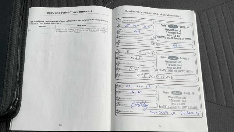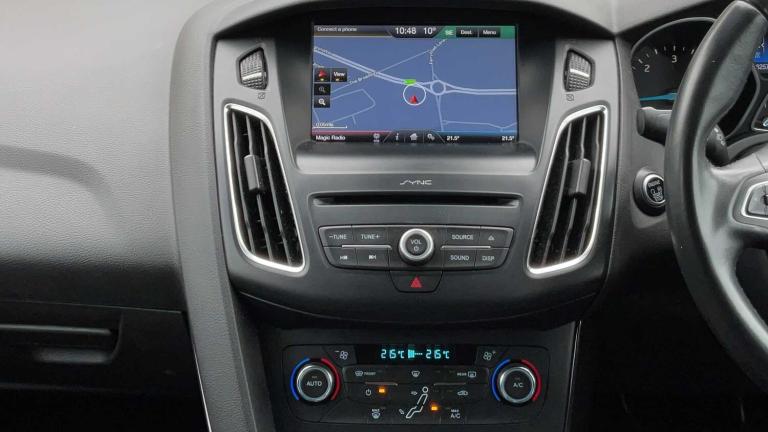 Ford DAB Navigation System, Parking Distance Sensors - Rear, SYNC3 with 8in Touchscreen DAB Audio System, Quickclear Heated Front Windscreen with Heated Washer Jets, DEATC - Dual-Zone Electronic Automatic Temperature Control, Part Service History - 5 stamps, 16in Alloy Wheels - 10 Spoke, Door Mirrors - Heated - Electric - Integrated Side Indicators - Body Coloured, Daytime Running Lamps, Front Fog Lights, Cruise Control with Active Speed Limiter, Rear Spoiler - Body Colour, Chrome Finish on Upper Door Line, Front Lower Grille - Self Colour, Front Upper Grille - Self Colour with Chrome Surround and Finish Bar, Locking Wheel Nuts, Scuff Plates - Front Aluminium Finish with Ford logo, Spare Wheel - Mini Steel, Windows - Electrically Operated Front and Rear with One Touch Lowering-Closing and Global Opening-Closing, Active City Stop, Alarm - Thatcham Category 1 with Volume Sensing and Perimeter, Brake Warning Lights - Automatic Flashing of Brake Lights Under Heavy Braking, Electronic Stability Programme - ESP - with Traction Control and Emergency Brake Assist - EBA, Ford Easy-Fuel Capless Refuelling System, IPS - Intelligent Protection System, Remote Central-Double Locking, TVC - Torque Vectoring Control, Automatic On-Off Headlights includes Automatic Wipers - Headlight Courtesy Delay, Colour TFT Instrument Cluster Display, EPAS - Electric Power Assisted Steering, Ford Eco Mode - Driver Information System, Front Suspension - Independent with MacPherson Struts and Anti-Roll Bar, Halogen Headlights with Black Surround, Rear Suspension - Independent Control Blade Multi-Link System and Anti-Roll Bar, Trip Computer, Tyre Pressure Monitoring System, Automatic Dimming Rear View Mirror, Centre console, Courtesy Light - Front and Rear Passengers - LED Overhead and Load Compartment, Ford Power Start Button, Front Floor Mats, Front Seat - Drivers Manual Height and Fore-Aft Adjustment, Front Seat - Drivers Manual Lumbar Support Adjustment, Front Seat - Passenger Manual Fore-Aft Adjustment, Front Seats - Sports Style, Gearshift Knob - Leather, Interior Door Lever - Chrome Finish, LED Ambient Courtesy Lighting, Leather-Trimmed Handbrake, MyKey, Rear Seat - 60-40 Split Back and Cushion, Rear Seat - Folding Centre Armrest with Two Integrated Cup Holders, Steering Column - Rake and Reach Adjustment, Steering Wheel - 3 Spoke - Leather Trimmed