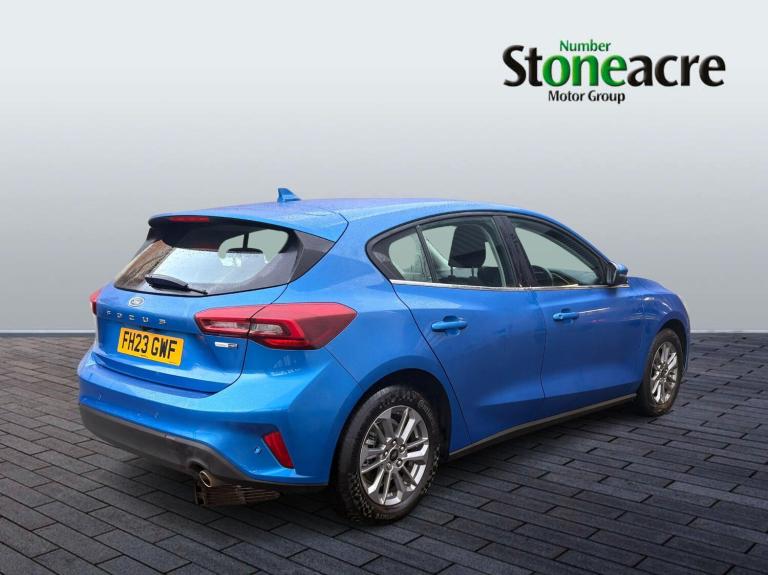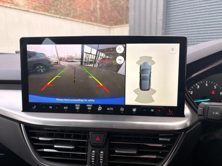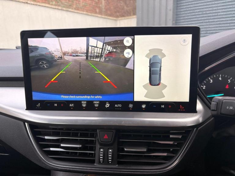 This 2023 Ford Focus T Titanium is a superb example, having had only one owner since new. This Euro 6 compliant model boasts a responsive 1.0 litre petrol hybrid engine, offering an efficient and engaging driving experience. Inside, you'll find the convenience of DEATC dual zone climate control, ensuring comfort for all occupants, and the Ford Key Free system for effortless keyless entry and start. The advanced Ford SYNC4 navigation system, complete with a generous 13.2 inch touchscreen, seamlessly integrates with Android Auto and Apple CarPlay, keeping you connected and on the right path.The Focus T Titanium also excels in practicality, featuring a large boot space perfect for luggage or shopping. For added ease and safety, it comes equipped with front and rear parking sensors, along with automatic on-off headlights. Performance is also a strong point, with an impressive 0-62mph acceleration time of just 9.0 seconds, demonstrating its capable acceleration compared to other vehicles in its class. This combination of advanced technology, comfort, and performance makes this Ford Focus a truly well rounded choice.