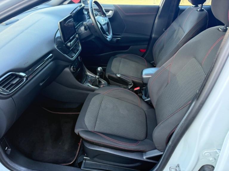 .Manual Air Conditioning, Quickclear Heated Windscreen, Rear Wiper, Driver Seat Height/lumbar Adjust, Cloth Upholstery, 3 Rear Seatbelts, Front And Rear Head Restraints, Body Coloured Door Mirrors, Rear Parking Sensor, Alloy Sports Pedals, Ford Easy Fuel, Power Assist Steering, Lane Keeping Aid With Lane Departure Warning, Tyre Pressure Monitoring System (TPMS), Selectable Drive Modes(Normal, Eco, Sport, Slippery And Trail), Thatcham Alarm, Pre-collision Assist With Autonomous Emergency Braking, Pedestrian/cyclist Detection & Post-collision Braking, Electronic Stability Control (ESC) And Hill Start Assist, Front And Rear Floor Mats, Full Digital 12.3"" Instrument Cluster, Power Foldable Heated Door Mirrors With Puddle Lamps, ST-Line Body Kit With Large Rear Spoiler Wth Sports Suspension, Front Fog Lights With Cornering Lights And LED Rear Lamps, Automatic Headlights With Rain Sensing Wipers And Auto High Beam, Centre Console With Armrest And Stowage, Ford Megabox Extended Bootspace, ST-Line Flat Bottomed Sensico Leather Steering Wheel With Leather Handbrake And Aluminium Gear Knob,