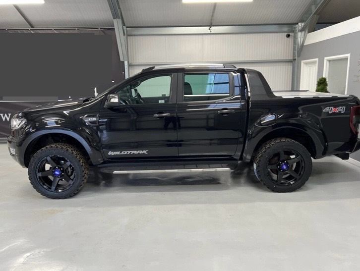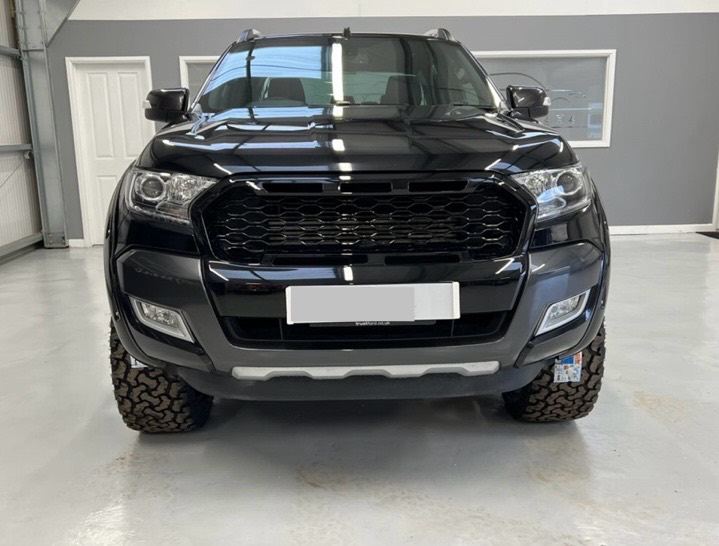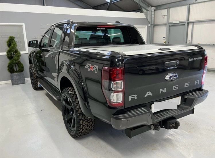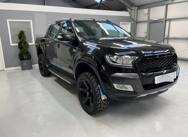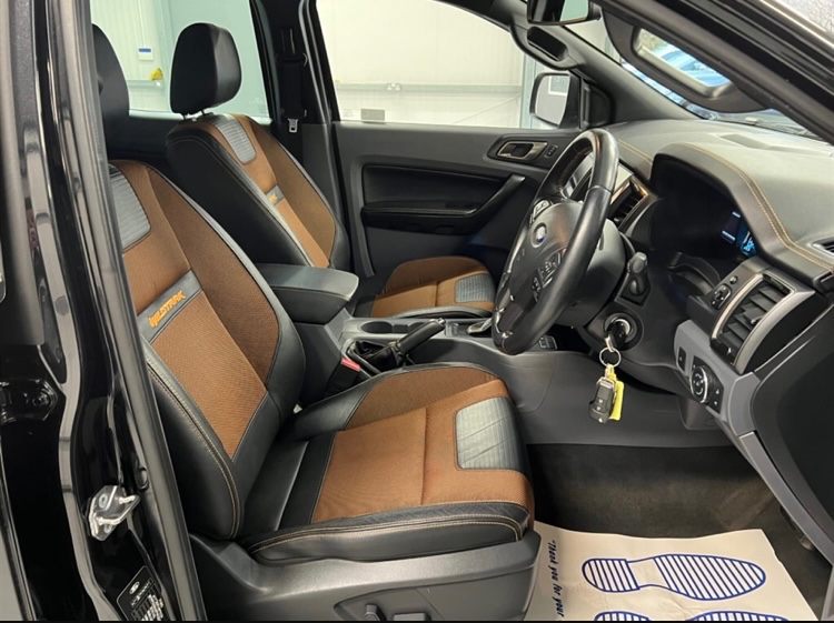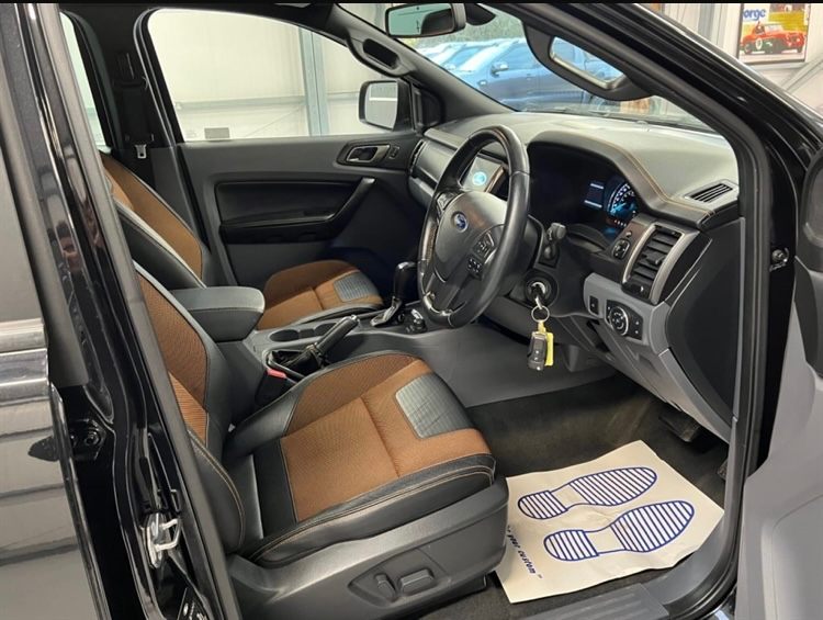NO VAT, NO VAT Stunning Top of the range automatic black Ford Ranger Wildtrak with black and orange leather seats, satellite navigation, reverse camera, bluetooth, aux, multi function steering wheel, electric windows, electric heated seats, cruise control, touch screen, electric mirrors, air conditioning, tow bar with electrics, lockable roller shutter, Euro 6, Isofix, raptor grill, raptor arches, 20 inch black alloys with new all terrain tyres, apple car play, sync 3. Very reliable and great running vehicle. Reluctant sale - Manual vehicle needed for kids driving lessons.