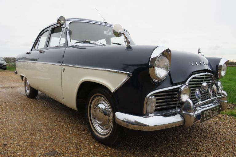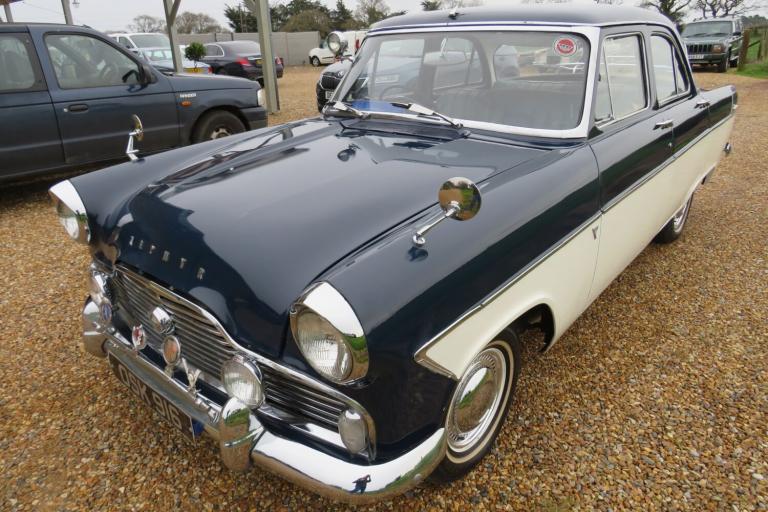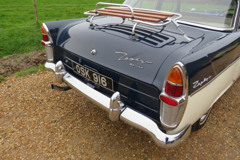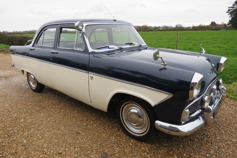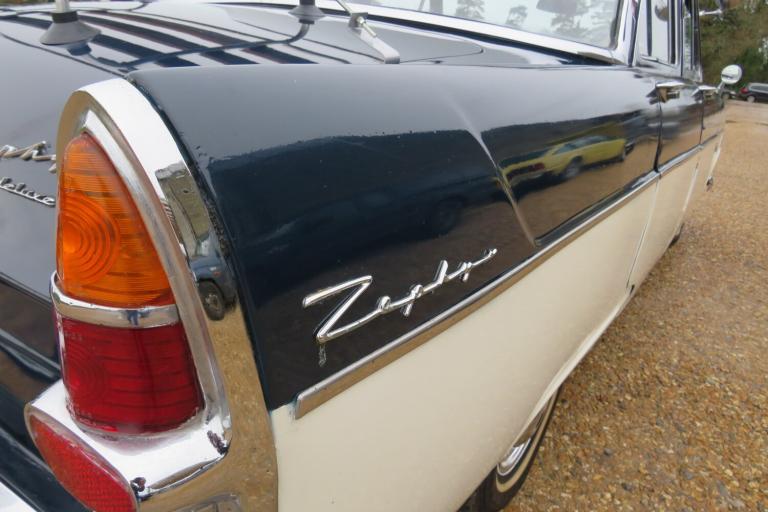 Finished in dark midnight blue over cream, Direct From a deceased estate, in the prior ownership for 14 years sympathetically restored about 10 years ago , in regular light use until recently, various useful spares, books and workshop manuals includedThe MkI Ford Consul and Zephyr models were first displayed at the Earl's Court Motor Show in 1950. They were among the first mass-produced cars to use MacPherson strut independent front suspension, a design which is still widely used today. While the Consul had a 1,508cc four-cylinder engine, the Zephyr used a 2,262cc six-cylinder unit that produced 68bhp and gave the car a top speed of 80mph.Available with 4-door saloon, estate and 2-door convertible bodies, the Zephyr Six was a success in both the market place and in competition. In 1953 a Zephyr driven by Maurice Gatsonides famously won the Monte Carlo Rally, pushing a Jaguar MkVII into second place in the process. Two years later a Zephyr driven by Vic Preston achieved an outright win in the East Africa Rally.In 1956 a larger MkII version was launched with sharper, more trans-Atlantic styling. Engine size increased to 2,553cc which hiked power output to 86bhp and top speed to 88mph, driving through a column-change 3-speed manual gearbox with optional overdrive. Front disc brakes became standard from 1961 onwards. It was replaced by the much plainer looking MkIII in 1962.First registered in March 1962, this Zephyr Deluxe appears to have been supplied new by Central Garage of Bangor to a Mr Price of Farrar Road in Bangor, judging by the original Manufacturer's Warranty card in the file.Little is known of the car's subsequent history, but it was acquired by the current keeper in 2011 to join his collection of classic cars. A proficient engineer and mechanic with a well-equipped workshop, he restored the car fairly early in his ownership and it seems to have been finished by 2015, a few photos on file showing the work in progress (some of which are reproduced here).Old MOTs show that the car was then in light regular use, clocking up some 700 miles over the next eight years or so, the odometer currently showing 73,406 miles. She comes with an original owner's handbook and several useful repair manuals and other books relating to the model ., this Zephyr has very nice paint work a wonderful period interior a strong responsive engine . She comes complete with a few upgrades and a large informative history folder