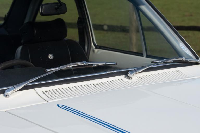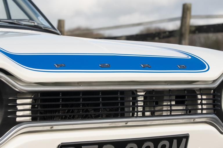 This Lot will be sold at auction at Symphony of Spring; Ascot Racecourse on Saturday 7th March. Bare metal restoration 2018 to 2024Superb overall conditionThe Mk. I Ford Escort was introduced in the UK at the end of 1967, making its show debut at Brussels Motor Show in January 1968 and replacing the successful long running Anglia. Escorts became successful as a rally car and eventually went on to become one of the most successful rally cars of all time. The Ford works team was practically unbeatable in the late 1960's and early 1970's; arguably the Escort's greatest victory was in the 1970 London to Mexico World Cup Rally being driven by Finnish legend, Hannu Mikkola. This gave rise to the Escort Mexico special edition road versions in honour of the rally car. In addition to the Mexico, the RS1600 was developed which used a Kent engine block with a 16-valve Cosworth cylinder head. As well as higher performance engines and sports suspension, these models featured strengthened bodyshells, making them ideal for rallying. Ford also produced an RS2000 model as an alternative to the somewhat temperamental RS1600, featuring a 2.0 litre Pinto engine. This also chalked up some rally and racing victories and pre-empted the hot-hatch market as a desirable but affordable performance road car.This superb example was purchased by the present owner in 2018 who then took the car back to bare metal and replaced the front panels (wing sills fitted) and any welding that was need was carried out by a professional restorer. This Escort is fitted with the correct engine for the model but its not the original when it left the factory and the gearbox has been rebuilt. Original parts were used including glass and the restoration was completed in March 2024. Its previous colour was black but is now resplendent in white with blue decals which looks fabulous and sharp! The car comes with a current V5 log book and is AVO Club registered. These are highly desirable and in this condition, it would surely be a head turner at any show. Consigned by James Good