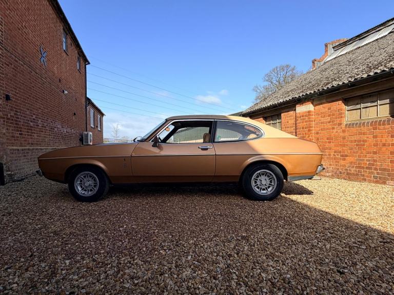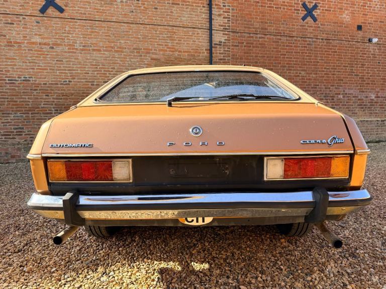 This particular June 1977 example is an especially rare survivor. Finished in elegant Bronze Metallic and specified as a 2.3 V6 Ghia automatic, it represents the Capri in its most mature and refined Mk2 form. Even more unusually, it retains an exceptional level of originality and benefits from desirable factory features including headlamp wipers, a seldom-seen option that underlines the car’s high specification status when new. The car is currently displaying just 143,000 kilometres (88,900 miles) a remarkably low recorded figure that further supports its genuine and well-preserved character.